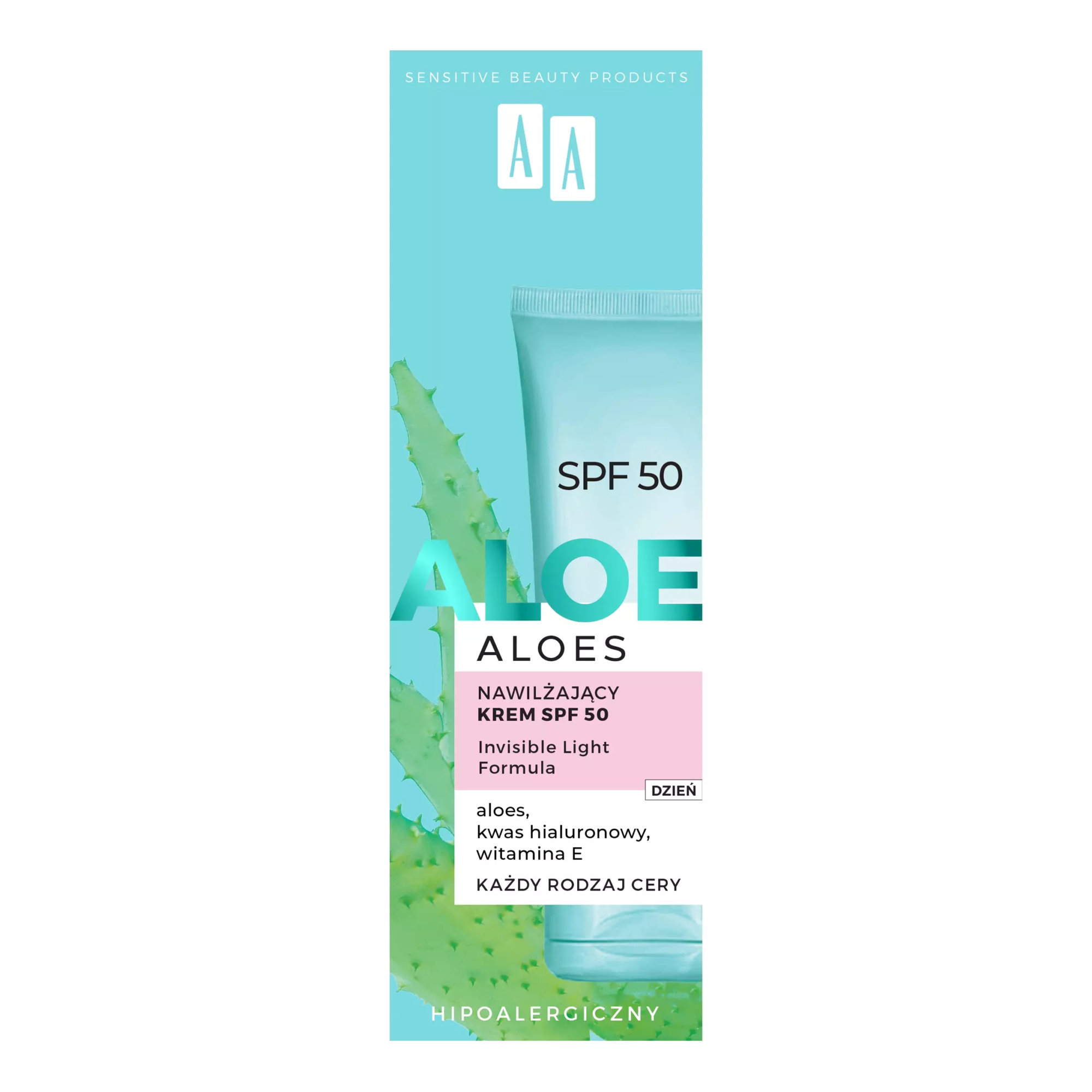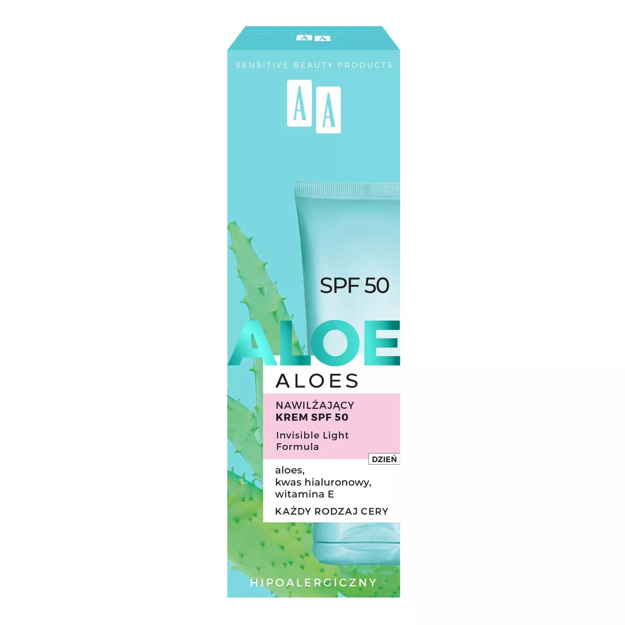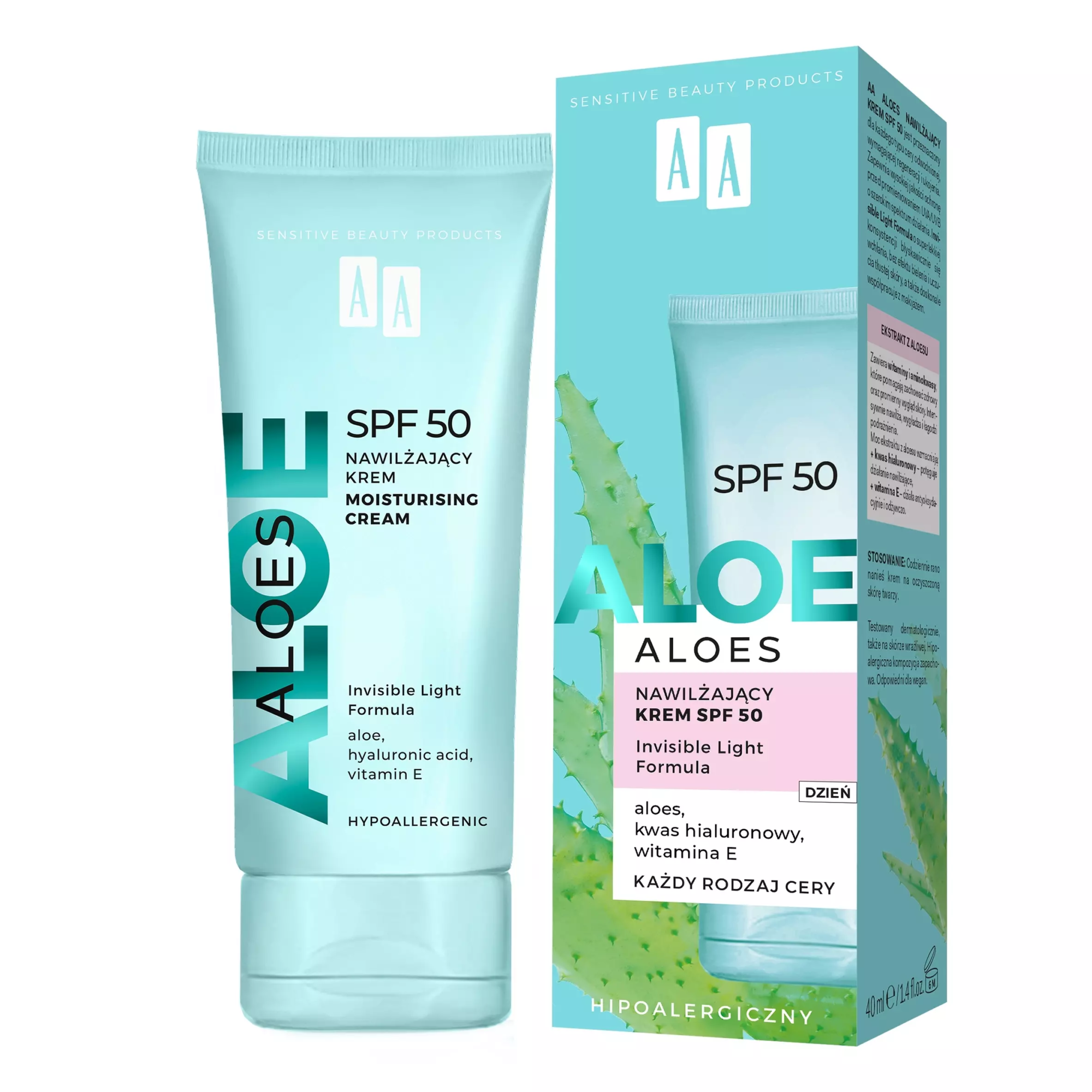 AA Aloes Nawilżający Krem SPF50 Aloes Witamina E Kwas Hialurownowy 40ml