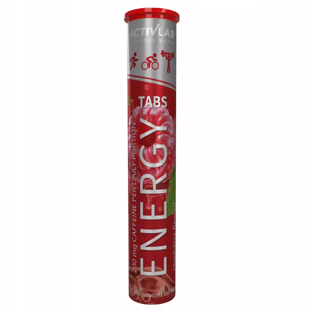 ENERGY TABS to suplement diety w formie tabletek musujących, który zawiera kofeinę z teaniną oraz komplet witamin z grupy B i witaminę C. Kofeina jest powszechnie stosowanym składnikiem produktów dedykowanym osobom, które oczekują zwiększenia poziomu energii, pobudzenia i poprawy koncentracji. Witaminy: C, B2, B3, B6, B12, kwas pantotenowy i kwas foliowy przyczyniają się do zmniejszenia uczucia zmęczenia i znużenia.