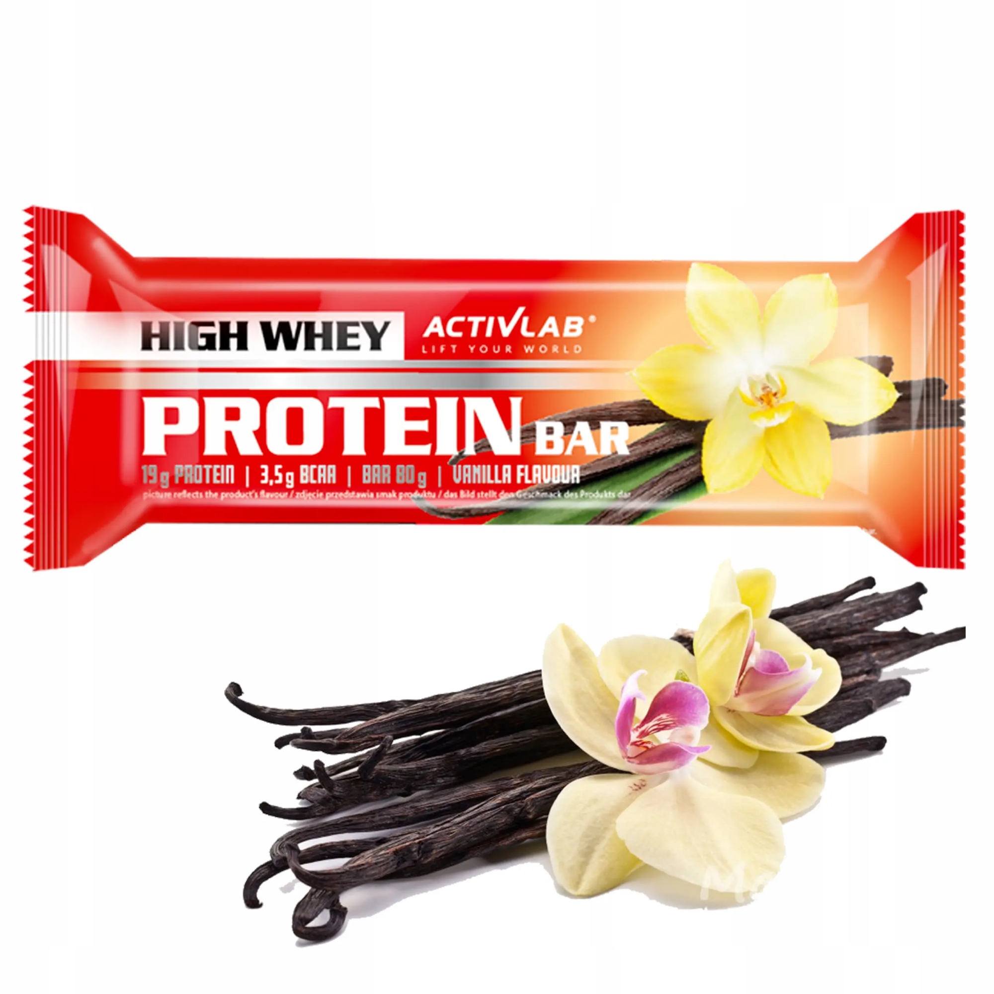 Baton High Whey Protein Bar to produkt wysokobiałkowy bogaty w witaminy i minerały. Dostępny jest w rewelacyjnych wersjach smakowych (orzech-karmel, czarna porzeczka, oraz wanilia w polewie jogurtowej), z pośród których każdy znajdzie coś dla siebie. High Whey Protein Bar marki Activlab możesz spożyć zarówno przed jak i po treningu, jednocześnie dostarczając organizmowi wszystko to czego potrzebuje. Nasz baton posiada optymalne proporcje białka, węglowodanów i tłuszczów oraz witamin i minerałów. Zawiera aż 1,9 g aminokwasów BCAA w jednej porcji, a dodatkowo został wzbogacony o glutaminę.