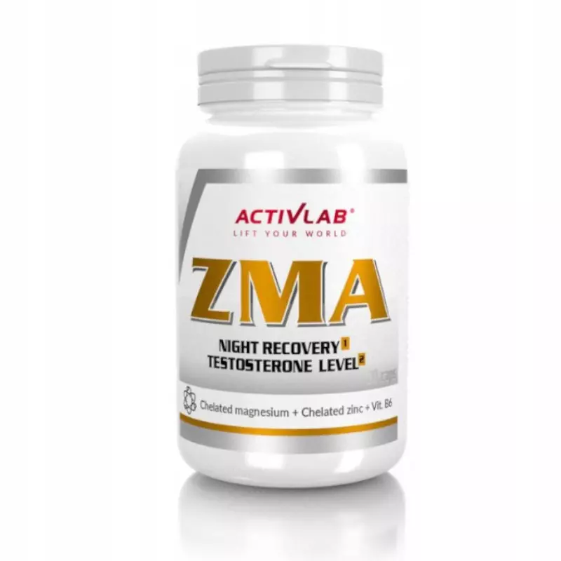 Activlab ZMA 90 kaps - ZMA marki Activlab to produkt przeznaczony dla osób intensywnie uprawiających różne dyscypliny sportu. Formułę preparatu stanowi połączenie cynku, magnezu i witaminy B6. Magnez znacząco przyczynia się do prawidłowego utrzymania metabolizmu energetycznego, a także pomaga w prawidłowym funkcjonowaniu mięśni i syntezie białka. Cynk natomiast wykazuje wpływ na właściwe utrzymanie poziomu testosteronu we krwi. Witamina B6 z kolei odpowiada za utrzymanie prawidłowego metabolizmu białka i glikogenu oraz przyczynia się do regulacji aktywności hormonalnej.