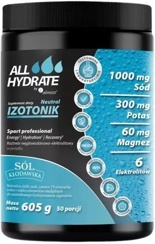 AllHydrate jako pierwszy produkt elektrolitowy na rynku zawiera naturalne źródło sodu jakim jest naturalna, kamienna sól z kopalni Kłodawa (niejodowana). Pierwiastki występujące w soli kłodawskiej są łatwo przyswajalne, a ich zawartość wspomaga prawidłowe funkcjonowanie organizmu człowieka. Są one pochodzenia naturalnego i powstały w wyniku wytrącenia z wody morskiej ok 257-252 mln lat temu. Dzięki tradycyjnym sposobom jej rozdrobnienia, sól nie traci swoich właściwości.