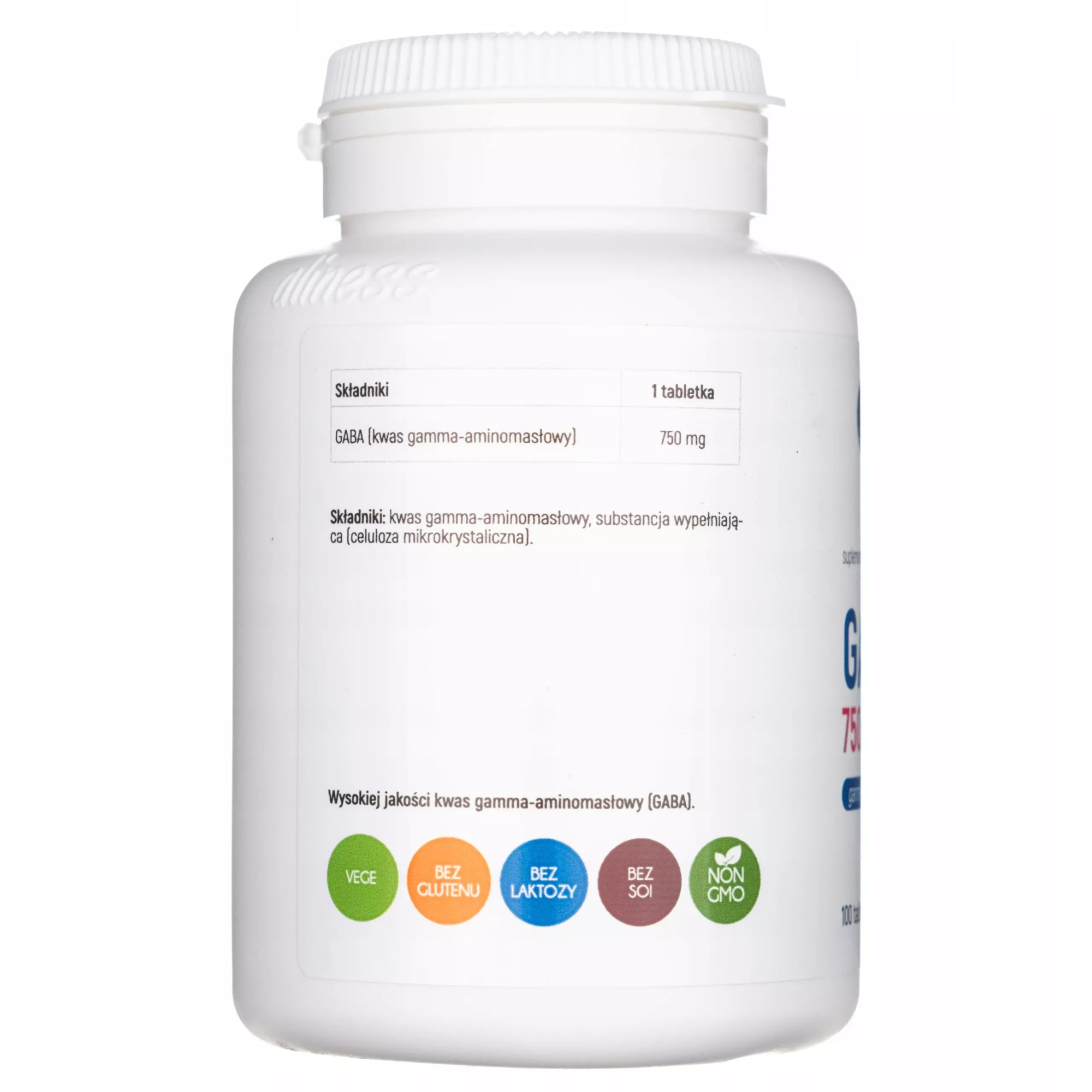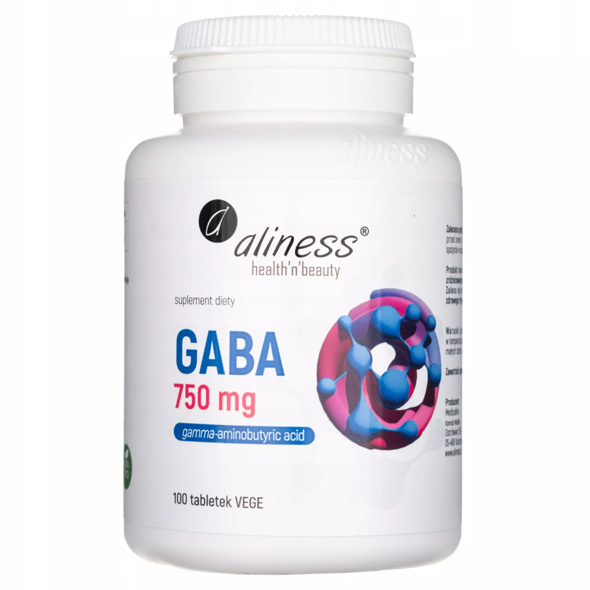 Aliness Gaba 750mg Kwas Gamma-Aminomasłowy Relaks Sen 100 Vege Tabletek
