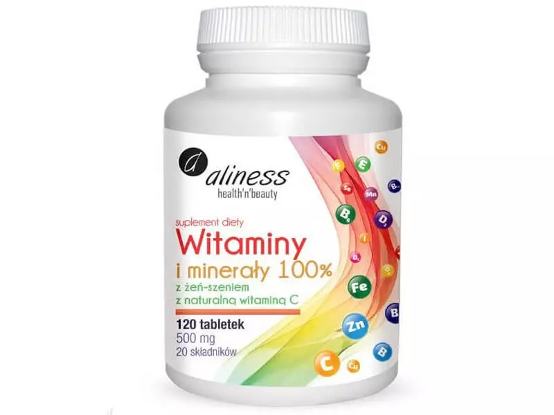 Aliness Witaminy I Minerały 100% Kompleks Żeń Szeń Jod Selen C 120 Tabletek