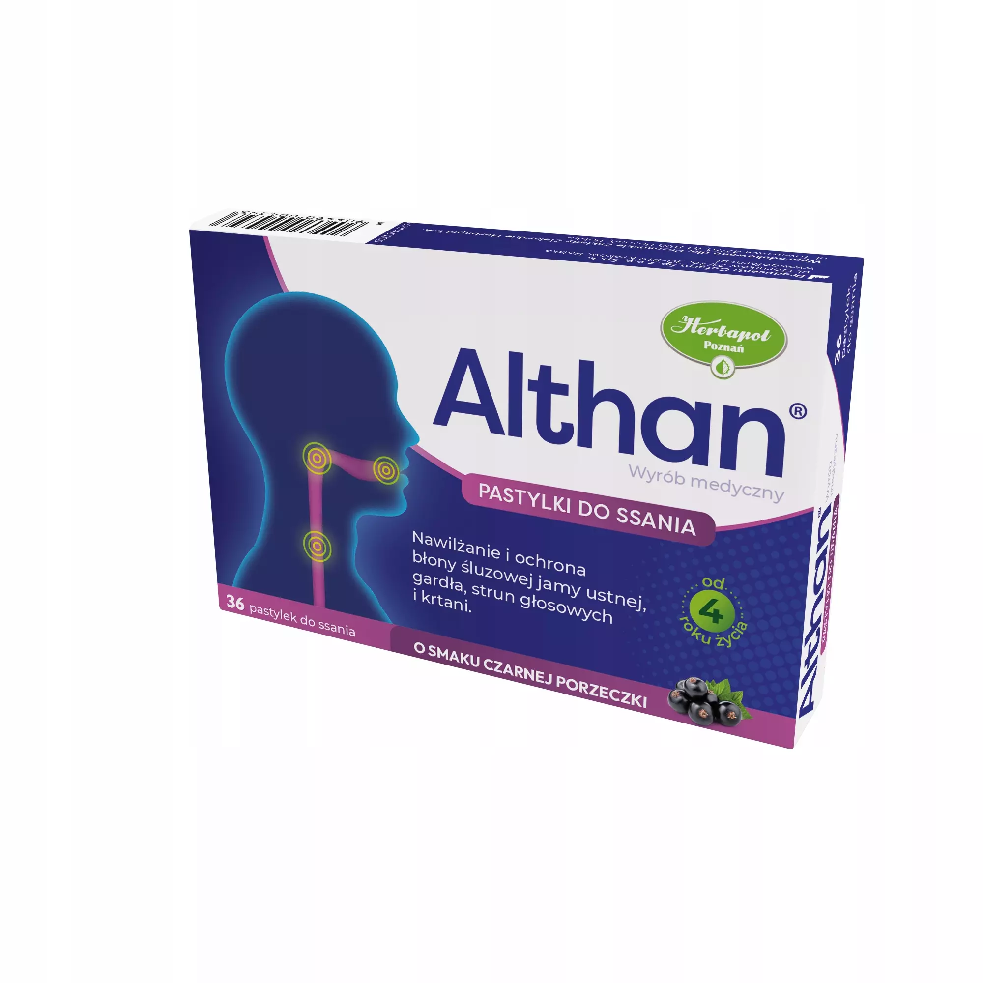 Althan Pastylki do Ssania zawierają ekstrakty z porostu islandzkiego, malwy i lipy. Rośliny te są bogate w substancje śluzowe, które tworzą ochronny film na błonie śluzowej, wspomagając nawilżenie i ochronę przed podrażnieniami.