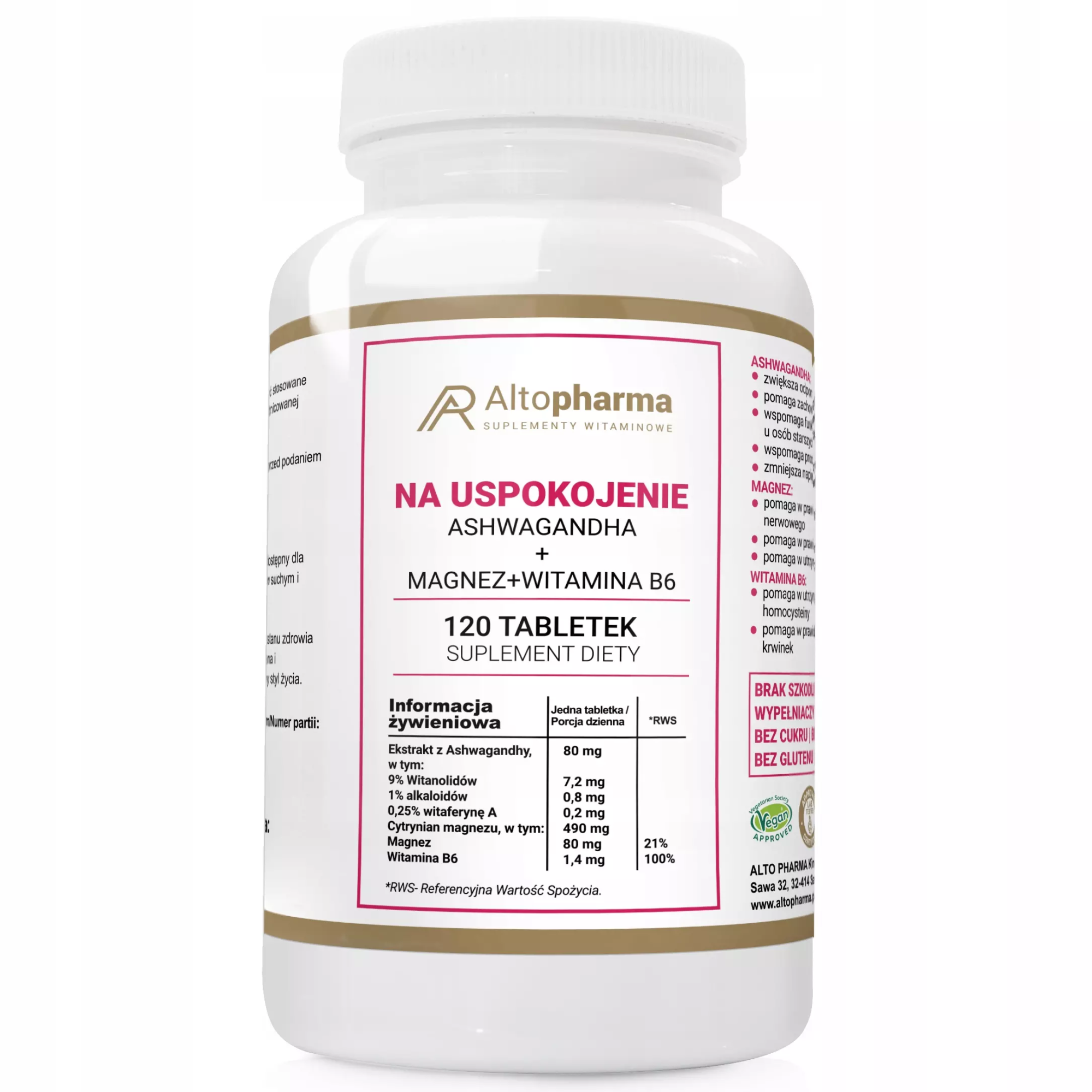 Alto Pharma Na Uspokojenie Ashwaganda + Magnez+ Wit B6 120 Tabletek