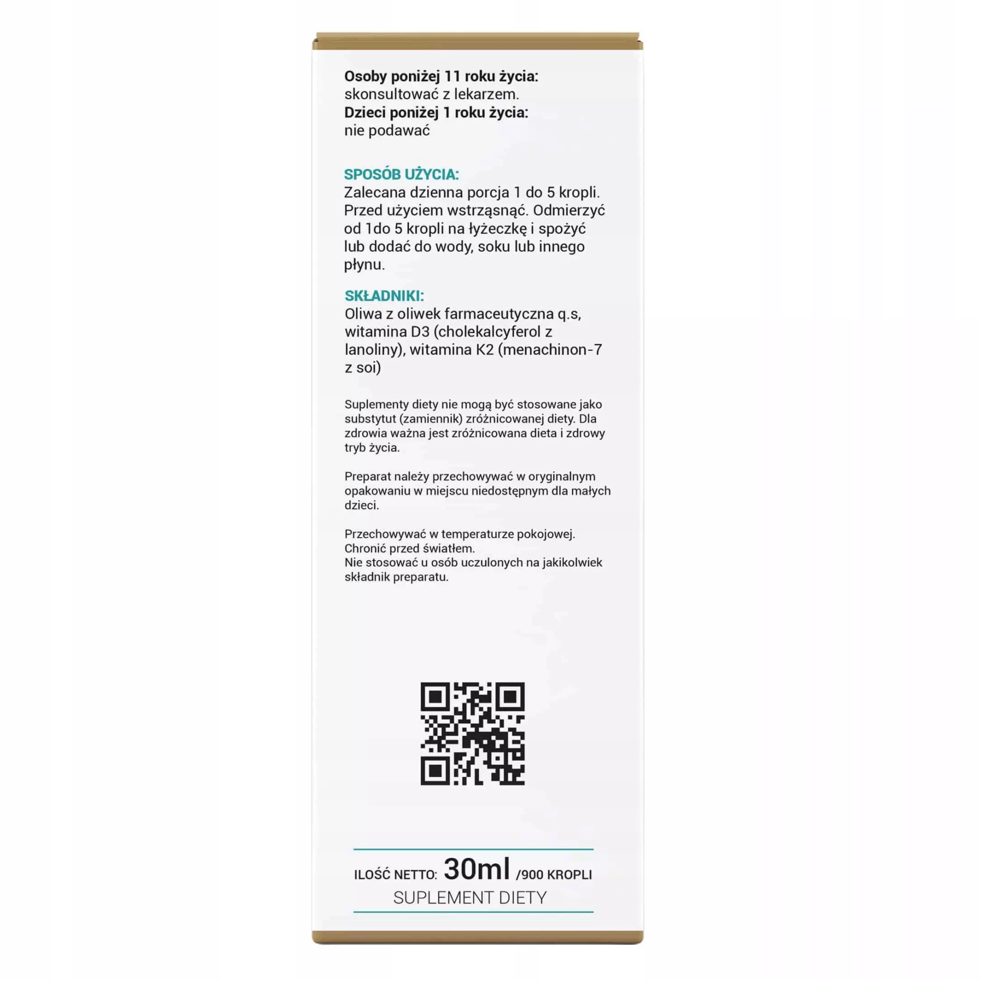 Bezpieczna dawka - każda kropla dostarczająca aż 20mcg witaminy K2 MK7 i 20mcg 800IU witaminy D3