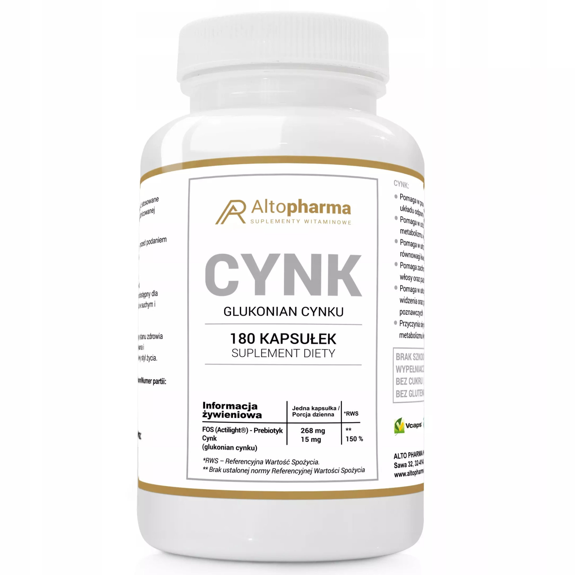 - MEGA DAWKA - Formuła najbardziej przyswajalna przez organizm 15mg cynku (glukonian cynku) marki Altopharma® w czystej postaci.