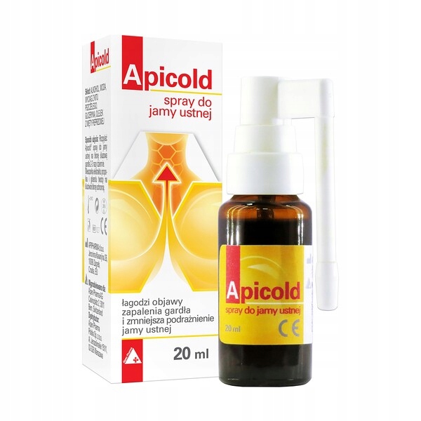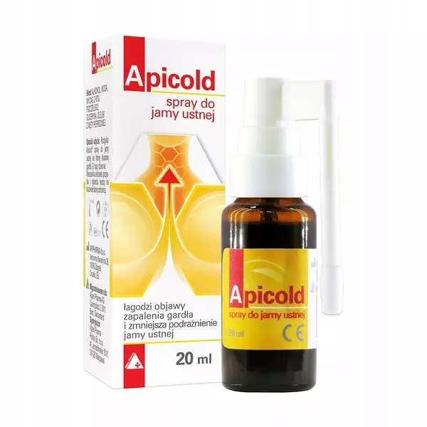 Rozpylić Apicold Oral spray na błonę śluzową gardła 2-3 razy dziennie.