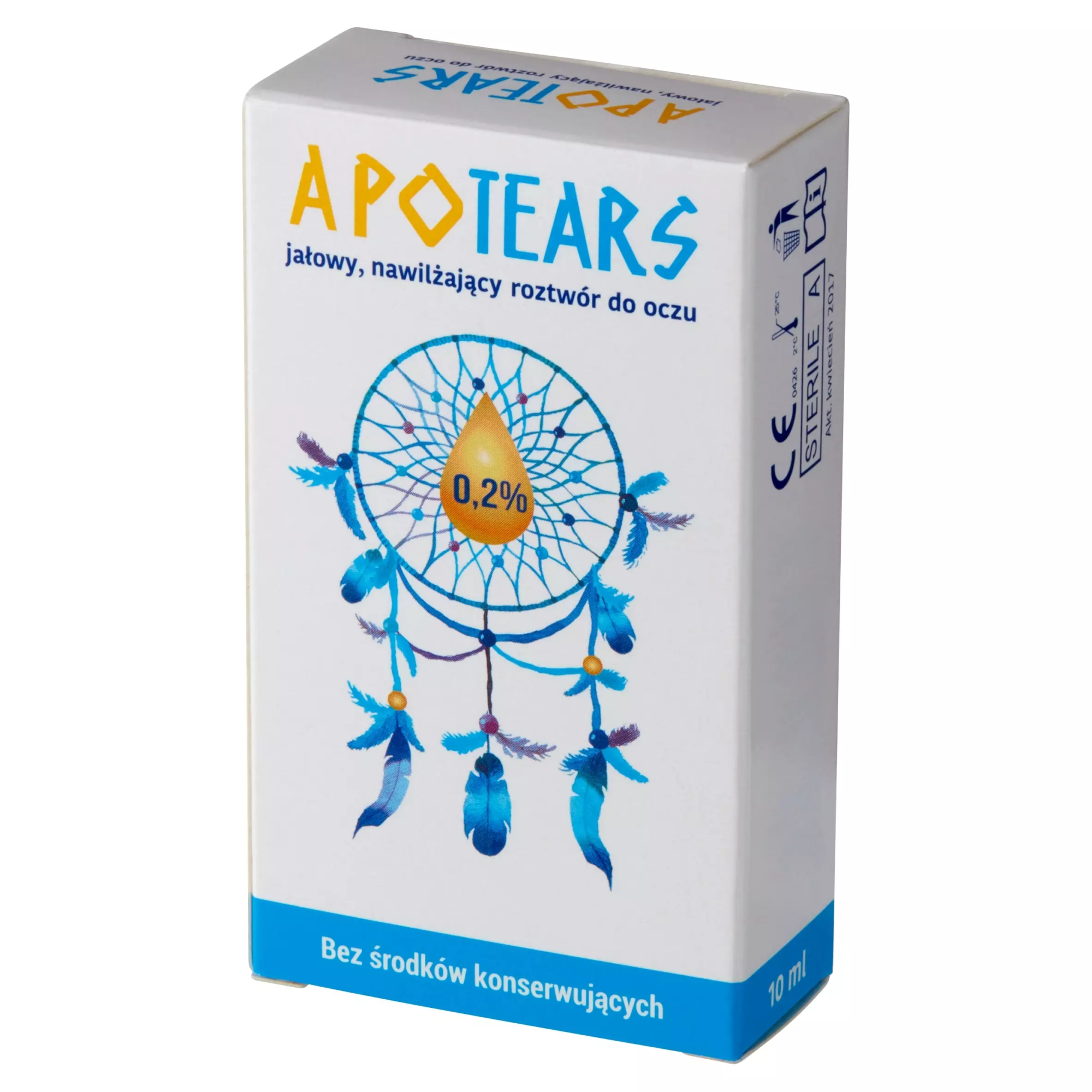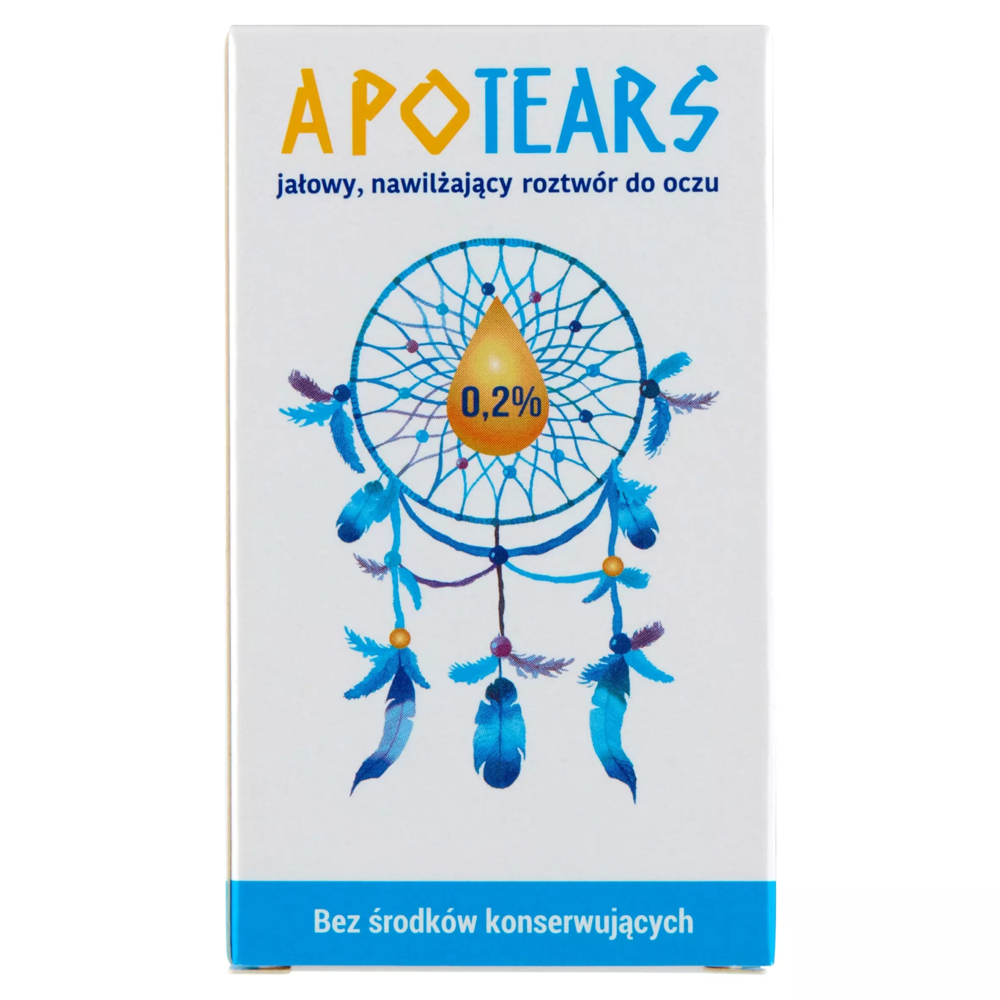 Apotears Krople do oczu 0,2% to jałowy, nawilżający roztwór hialuronianu sodu przeznaczony do stosowania w celu nawilżenia, nawodnienia i ochrony oczu.