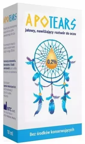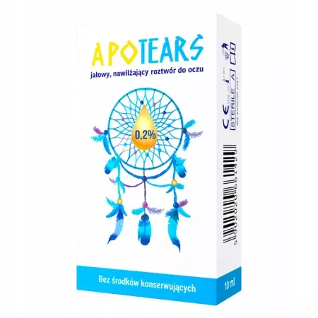 - Apotears krople do oczu 0,2% to niezawierający środków konserwujących, 0,2% roztwór hialuronianu sodu do oczu, o wysokiej masie cząsteczkowej, otrzymywany metodami biotechnologicznymi. Hialuronian sodu ma właściwości mukomimetyczne, mukoadhezyjne i wiskoelastyczne, które poprawiają stabilność filmu łzowego i zapewniają uczucie komfortu na powierzchni oka poprzez nawilżenie, nawodnienie i ochronę.