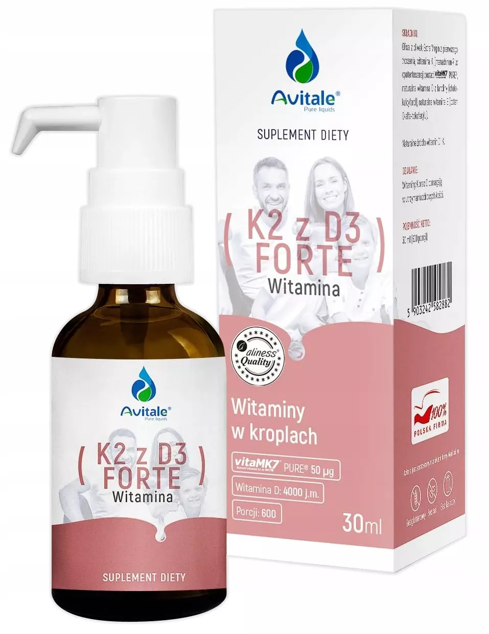 Avitale Krople Witamina K2 MK-7 + D3 Forte Wysoka Dawka Kości Zęby 30ml