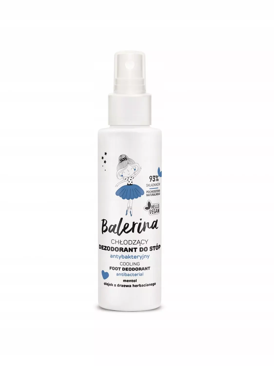 Spray do stóp do codziennego stosowania, o działaniu chłodzącym i antybakteryjnym. Zmniejsza nadmierną potliwość stóp, przeciwdziała powstawaniu nieprzyjemnego zapachu, odświeża i chłodzi naskórek. Ma doskonały skład, który pielęgnuje nawet bardzo wrażliwą skórę - zawiera 93% składników pochodzenia naturalnego. Olejek z drzewa herbacianego neutralizuje nieprzyjemny zapach stóp, a mentol chłodzi i pozostawia orzeźwiającą woń. Łatwy w użyciu atomizer ułatwia ukierunkowaną i komfortową aplikację nawet w trudno dostępnych miejscach, np. między palcami. Polecany sportowcom, osobom noszącym zakryte, nieoddychające obuwie oraz wszystkim, którzy pragną zadbać o świeżość swoich stóp.