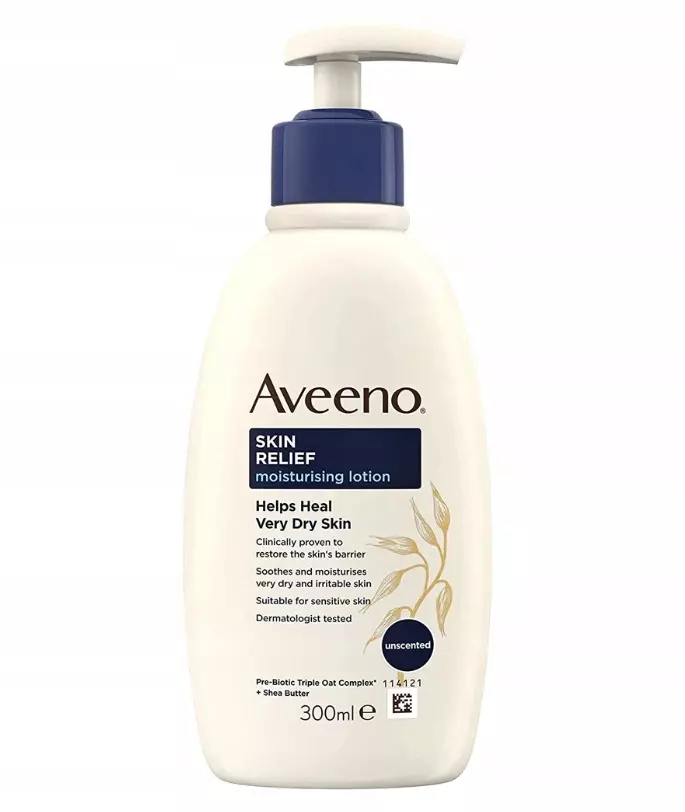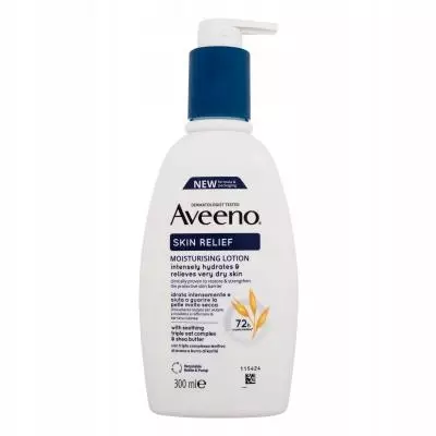 Intensywne nawilżenie – balsam do ciała Aveeno wzmacnia naturalną barierę ochronną skóry, chroniąc skórę przed czynnikami zewnętrznymi i wspiera naturalną produkcję ceramidu w skórze Uspokaja skórę – dzięki odżywczemu ekstraktowi z owsa, mące owsianej, olejkowi owsianemu i masłu shea, balsam do ciała uspokaja bardzo suchą skórę, zapewnia intensywne nawilżenie i zapobiega utracie wilgoci Dla zdrowej skóry – krem do skóry z prebiotycznym i koloidalnym owsem wspomaga rozwój zdrowych mikroorganizmów skórnych i pomaga w pobudzaniu kwasu mlekowego jako naturalnego nawilżacza Bezzapachowy krem do ciała – bezzapachowy, naturalnie pachnący i wegański* krem nawilżający idealnie nadaje się do bardzo suchej, popękanej, podrażnionej skóry i delikatnie ją pielęgnuje. Aveeno Skin Relief nawilżający balsam do ciała, pielęgnacja skóry zapewnia 72h nawilżenia**, do bardzo suchej i łamliwej skóry, butelka wykonana w 50% z plastiku pochodzącego z recyklingu
