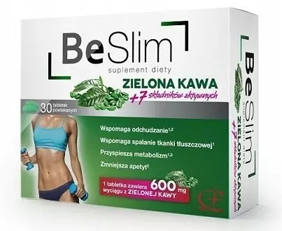 Be Slim zielona kawa , to suplement diety przeznaczony dla osób odchudzających się. Naturalne składniki, takie jak wyciąg z zielonej kawy czy gorzkiej pomarańczy wspomagają metabolizm i zmniejszają apetyt.