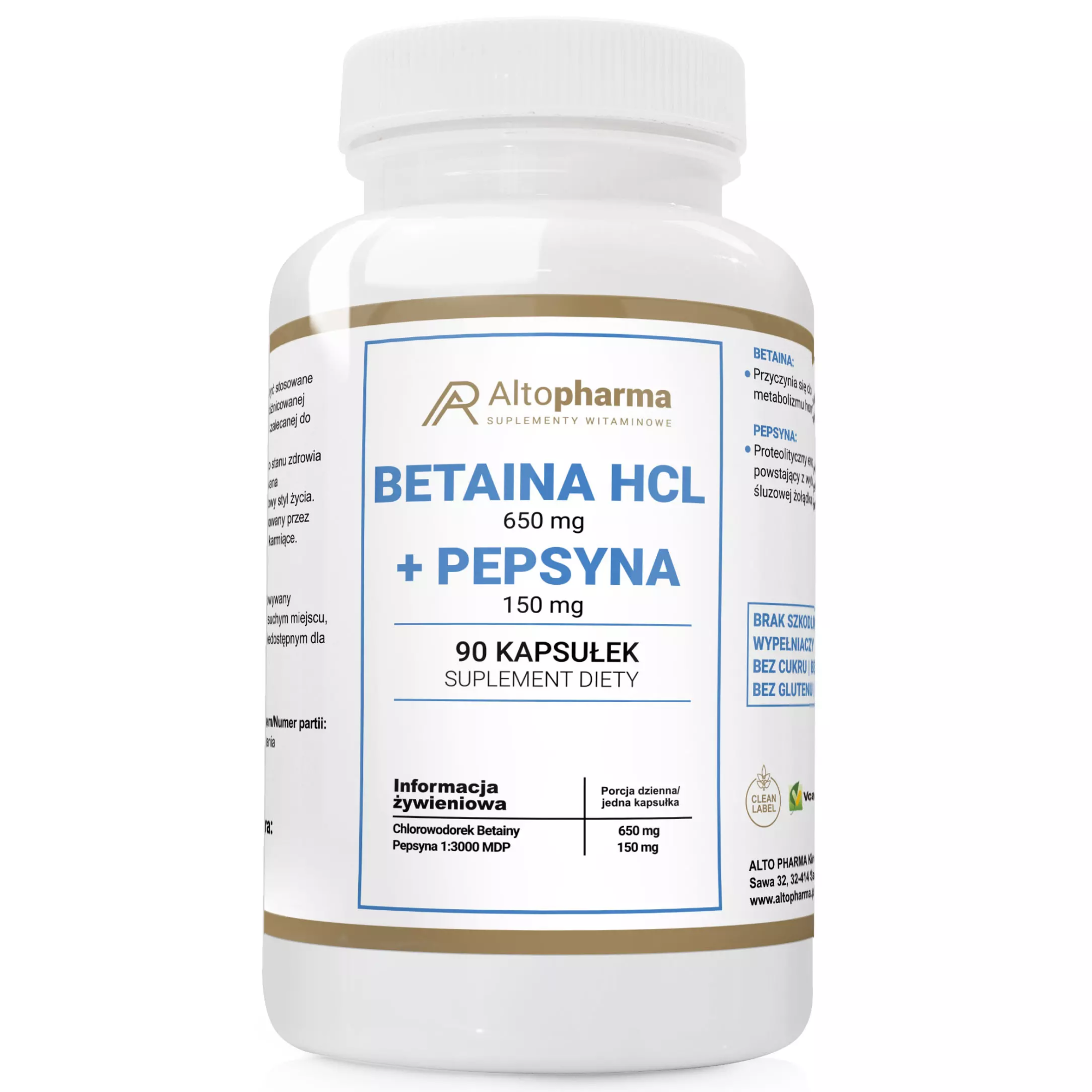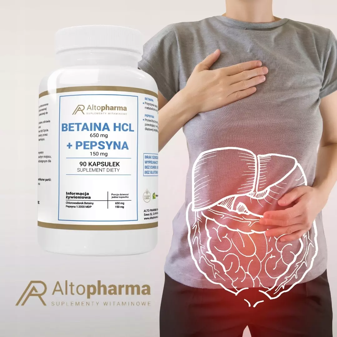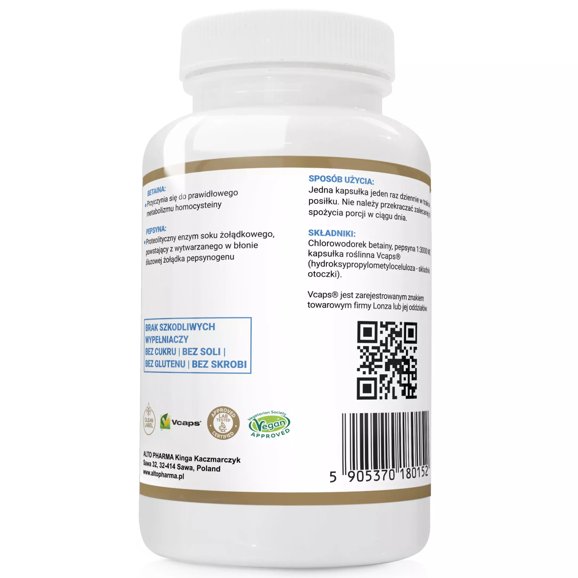 BETAINE 650mg HCL PEPSYNA betaina trawienie 90kaps Marka Alto Pharma
