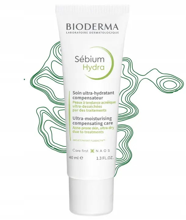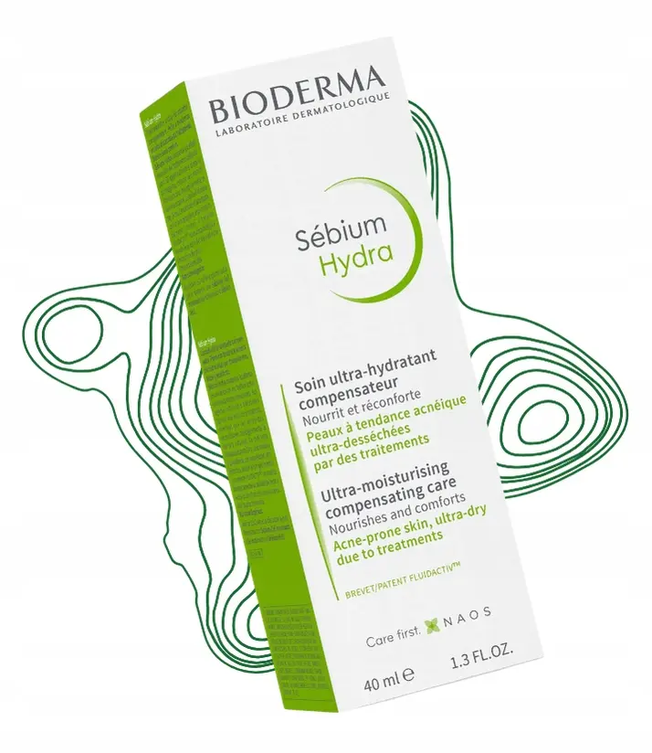 Sébium Hydra biologicznie zapobiega działaniom niepożądanym, które występują podczas kuracji przeciwtrądzikowych. Zawarte w nim substancje nawilżające (gliceryna) oraz regenerujące (ceramidy) ograniczają złuszczanie i ściągnięcie skóry. Enoxolon i alantoina redukują zaczerwienienia i łagodzą podrażnienia skóry, zapewniając długotrwały komfort. Dodatkowo zawarty w produkcie unikalny patent FLUIDACTI reguluje jakość sebum, zapobiegając jego gęstnieniu i blokowaniu porów, a przez to powstawaniu zaskórników i zmian trądzikowych. Produkt może być stosowany jako baza pod makijaż. Nie zatyka porów, jest doskonale tolerowany.