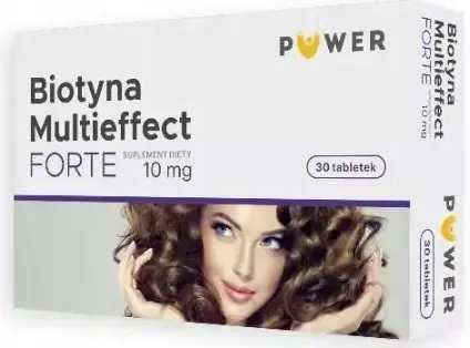 Suplement diety z wysoką zawartością biotyny Puwer Biotyna Multieffect Forte. Uzupełnia niedobory ważnej dla zachowania zdrowego wyglądu witaminy B7.