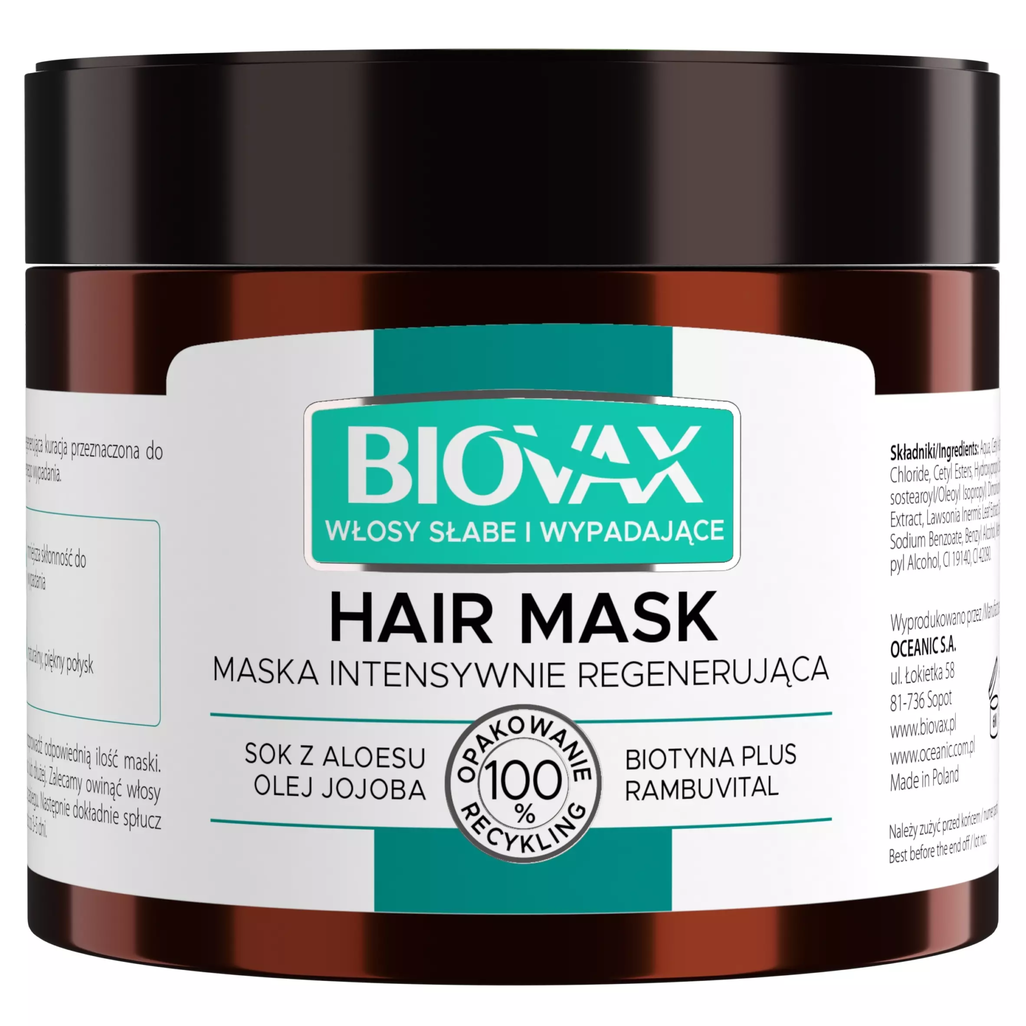 Intensywnie regenerująca maseczka Biovax opracowana została przez specjalistów w celu zagwarantowania Twoim słabym i skłonnym do wypadania włosom jak najlepszej kondycji.