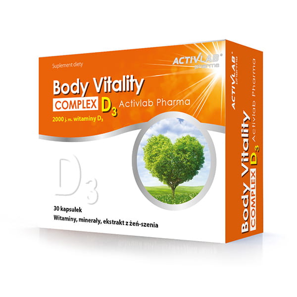 Body Vitality Complex + D3, to produkt zawierający optymalny zestaw witamin i minerałów z ekstraktem z żeń-szenia oraz ze zwiększoną zawartością wit. D3 - aż 2000 jednostek.