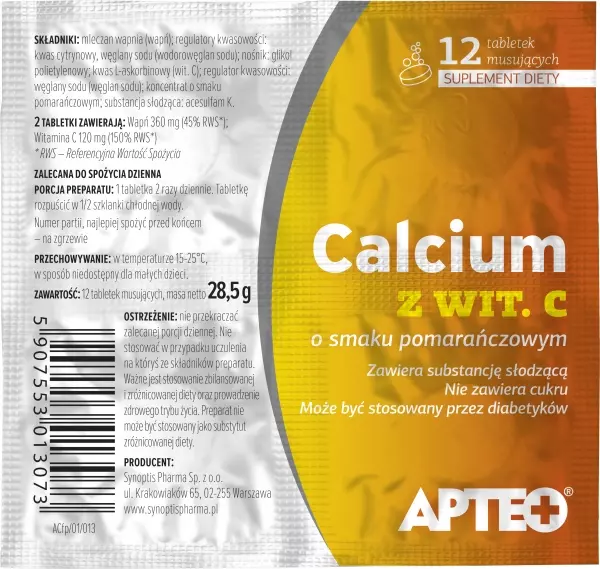 APTEO CALCIUM Z WIT.C SM.POMARAŃCZOWY(W FOLI)12TABL.MUS.ODPORNOŚĆ ZDR.KOŚĆI