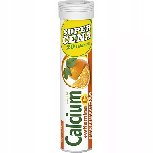 Calcium + witamina C to tabletki musujące o smaku pomarańczowym, cytrynowym lub poziomkowym. Polecany osobom mającym zwiększone zapotrzebowanie na wapń.