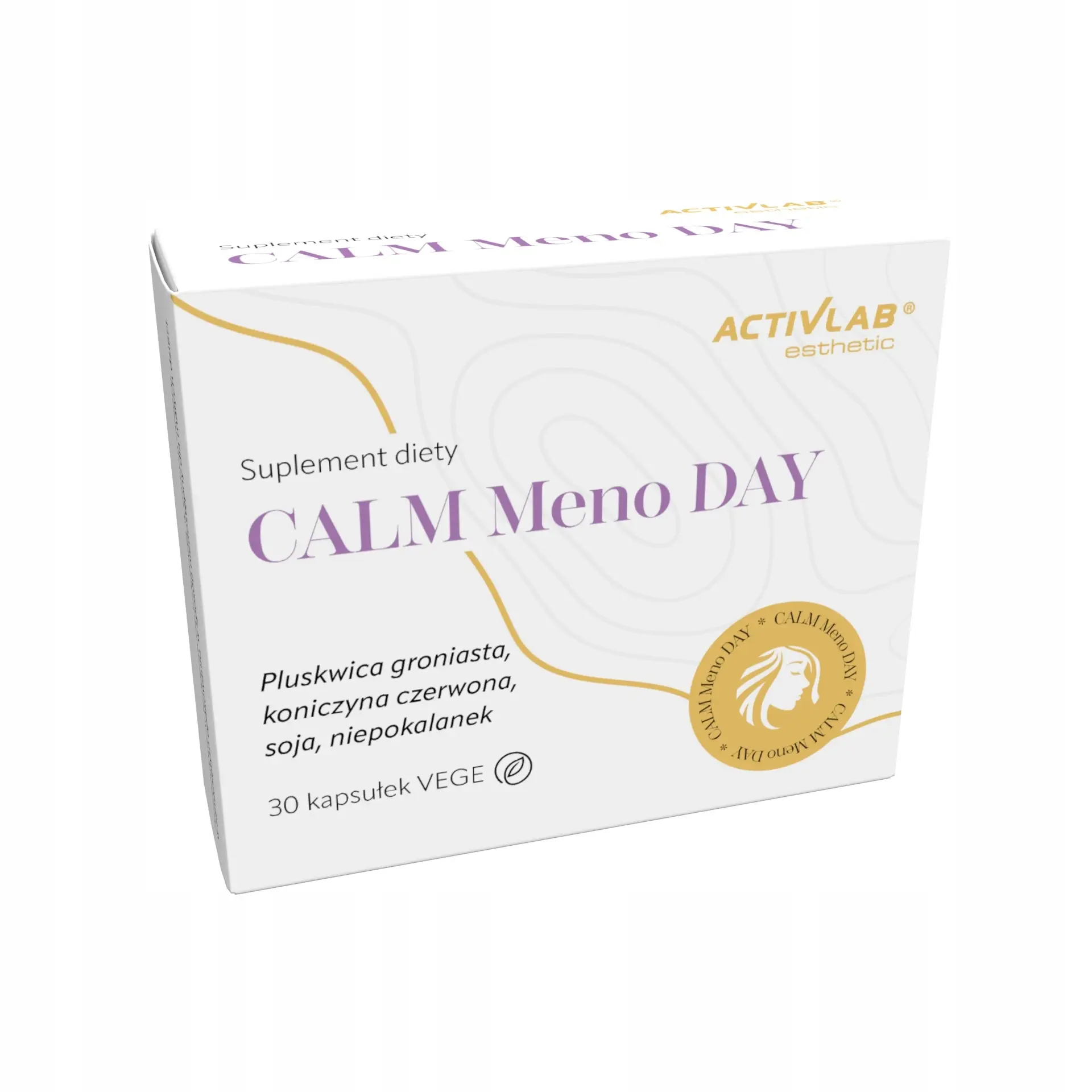 Activlab Esthetic CALM Meno DAY to suplement diety w kapsułkach, stworzony dla kobiet w okresie menopauzy. Produkt to źródło ekstraktów roślinnych, witamin oraz cynku. Zawiera m.in. ekstrakt z koniczyny czerwonej, owoców niepokalanka oraz witaminy C, D, E, K.