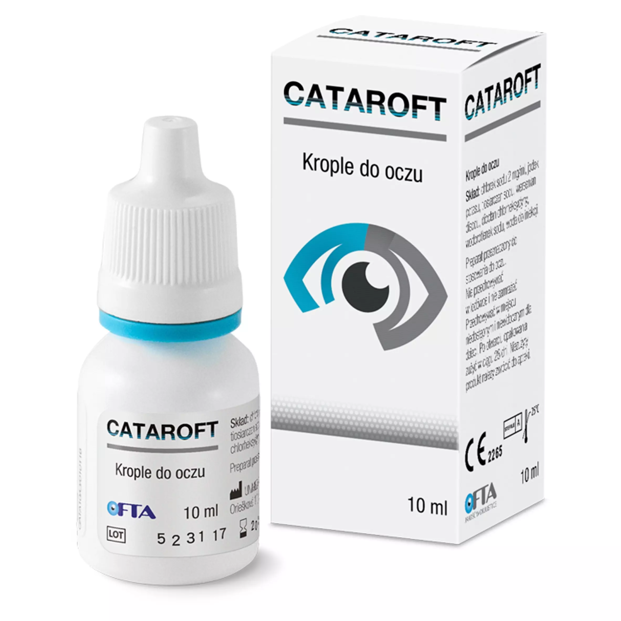 Krople do oczu Cataroft to nawilżający, izotoniczny roztwór do oczu, który zawiera dodatkowo jodek potasu.