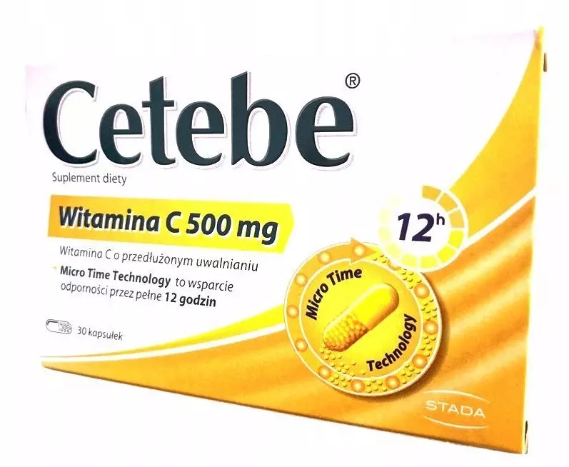 Cetebe to suplement diety zawierający MicroTime Technology, który gwarantuje powolne uwalnianie witaminy C do organizmu przez pełne 12 godzin. Dzięki temu można uzyskać niemal całkowite wchłanianie witaminy C dostarczanej do organizmu oraz wsparcie odporności przez cały dzień.
