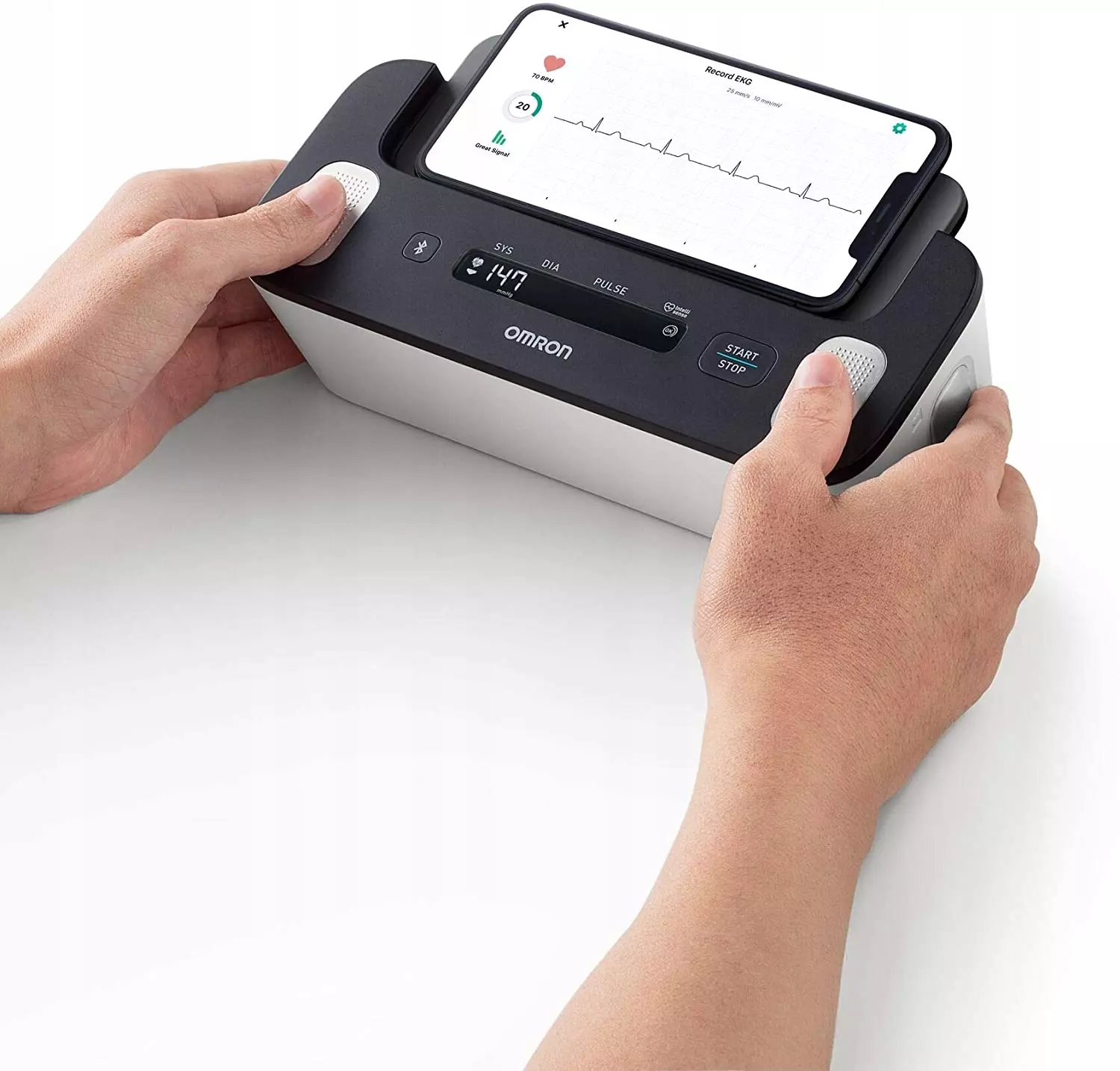 Dzięki niemu można bardzo łatwo ustalić dwa krytyczne wartości pomiarowe na raz – co ułatwia monitorowanie zdrowia serca w domu. Szybka kontrola szeregu zaburzeń funkcji serca, w tym zaburzeń rytmu serca, takich jak AFib (migotanie przedsionków), tachykardia, bradykardia i wysokie ciśnienie krwi. W darmowej aplikacji OMRON Connect wyniki są łatwo zrozumiałe i zapisywane, dzięki czemu na życzenie można je bez problemu pokazać lekarzowi.