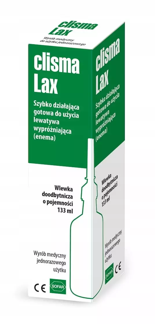 Clisma Lax to środek przeczyszczający na bazie soli fizjologicznej, wywiera działanie osmotyczne w jelicie grubym przez pobieranie wody do światła jelita, powodując rozszerzenie i pobudzenie perystaltyki jelit i w konsekwencji oczyszczanie jelita.