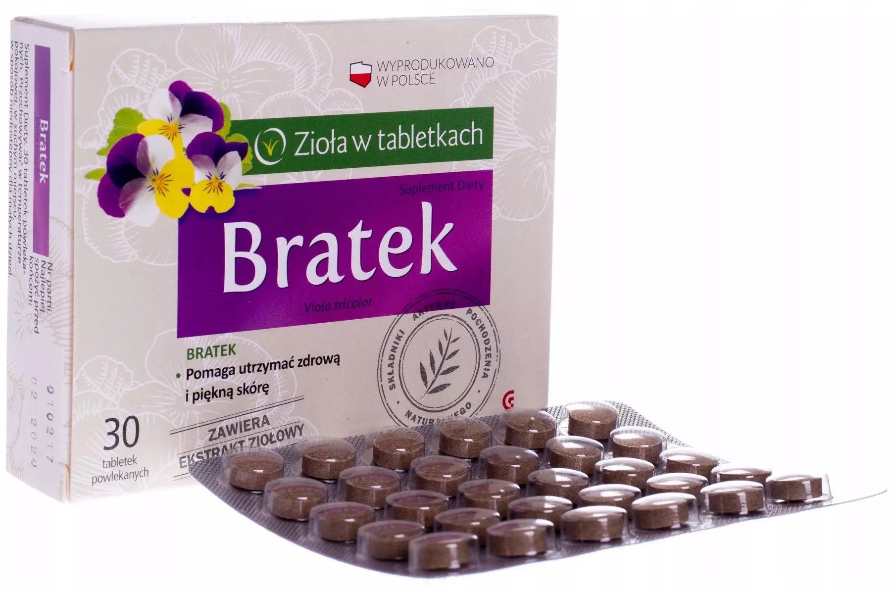 Zawartość składników w 1 tabletce: wyciąg fiołka trójbarwnego (w przeliczeniu na suszony bratek) 600 mg; wyciąg z fiołka trójbarwnego 100 mg.