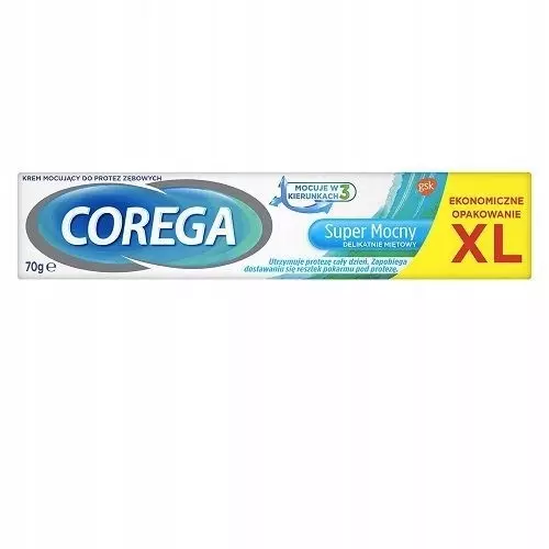 Zestaw produktów Corega to rozwiązanie, które pozwoli ci kompleksowo zadbać o odpowiednią higienę jamy ustnej i pielęgnację protezy oraz zapewni mocowanie protezy w ciągu całego dnia: