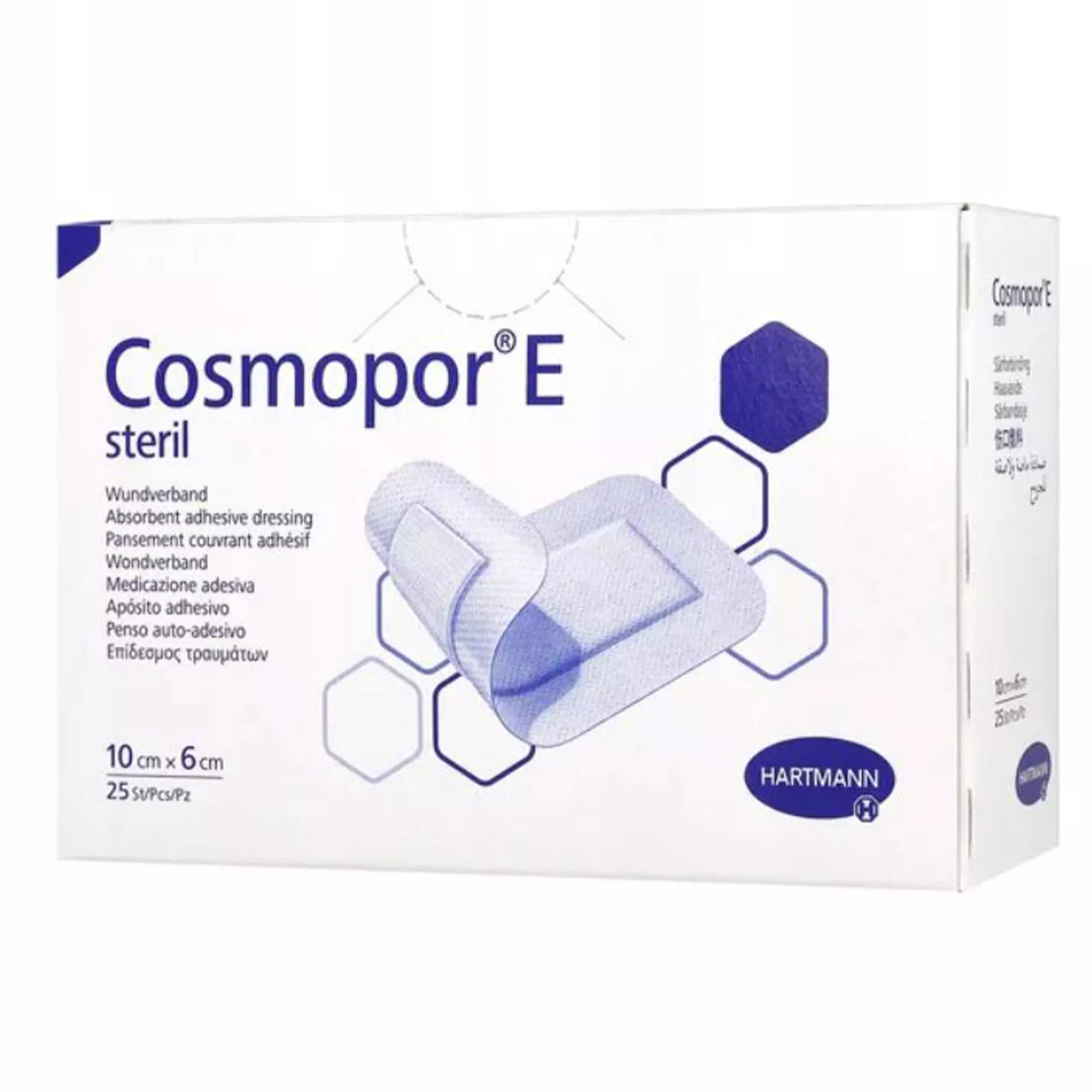 Samoprzylepny, 3-warstwowy opatrunek na rany i skaleczenia do skóry wrażliwej posiadający hydrofobową warstę kontaktową nieprzywierającą do rany. Cosmopor E zachowuje znakomite właściwości opatrunku Comopor steril przy zastosowaniu bardziej ekonomicznych surowców.