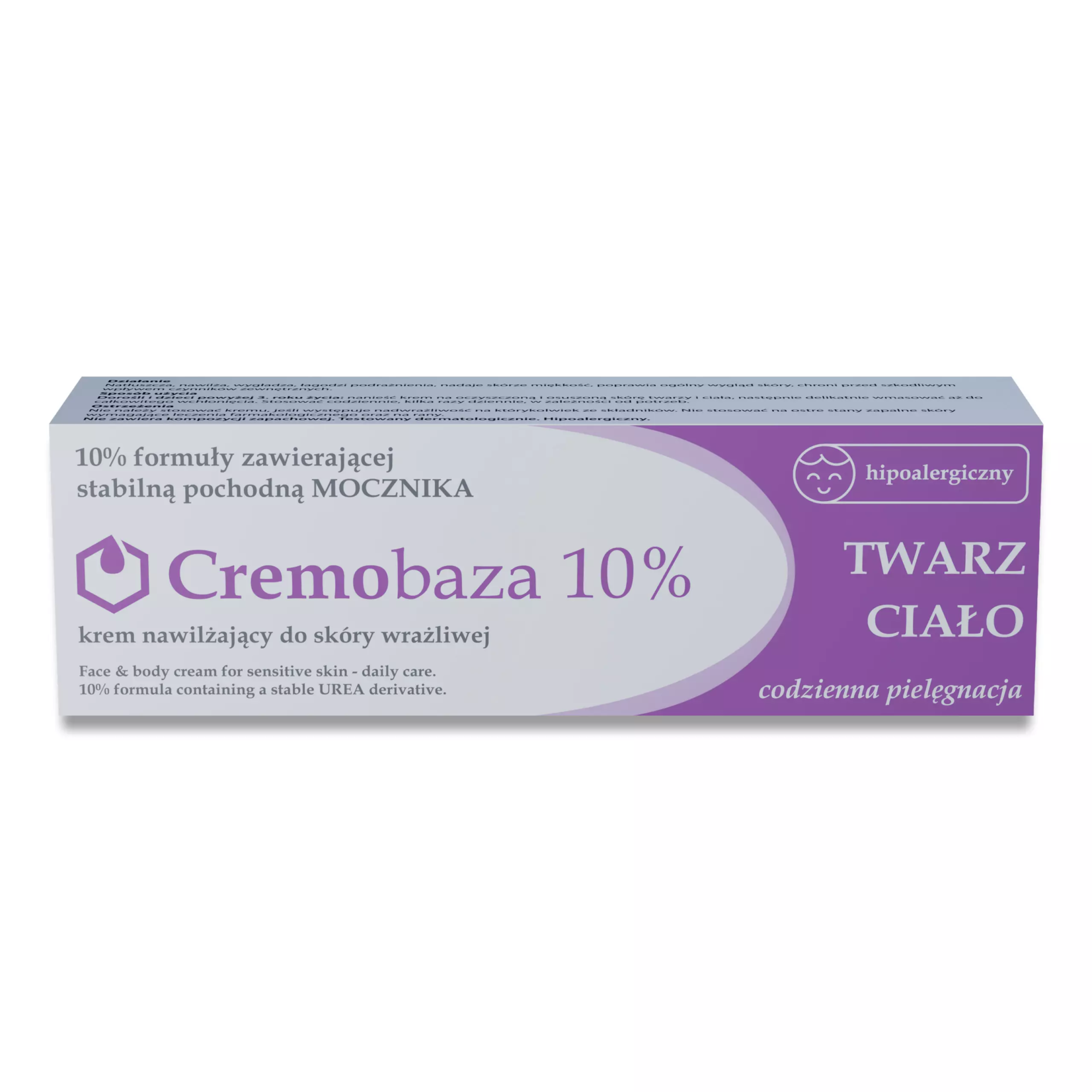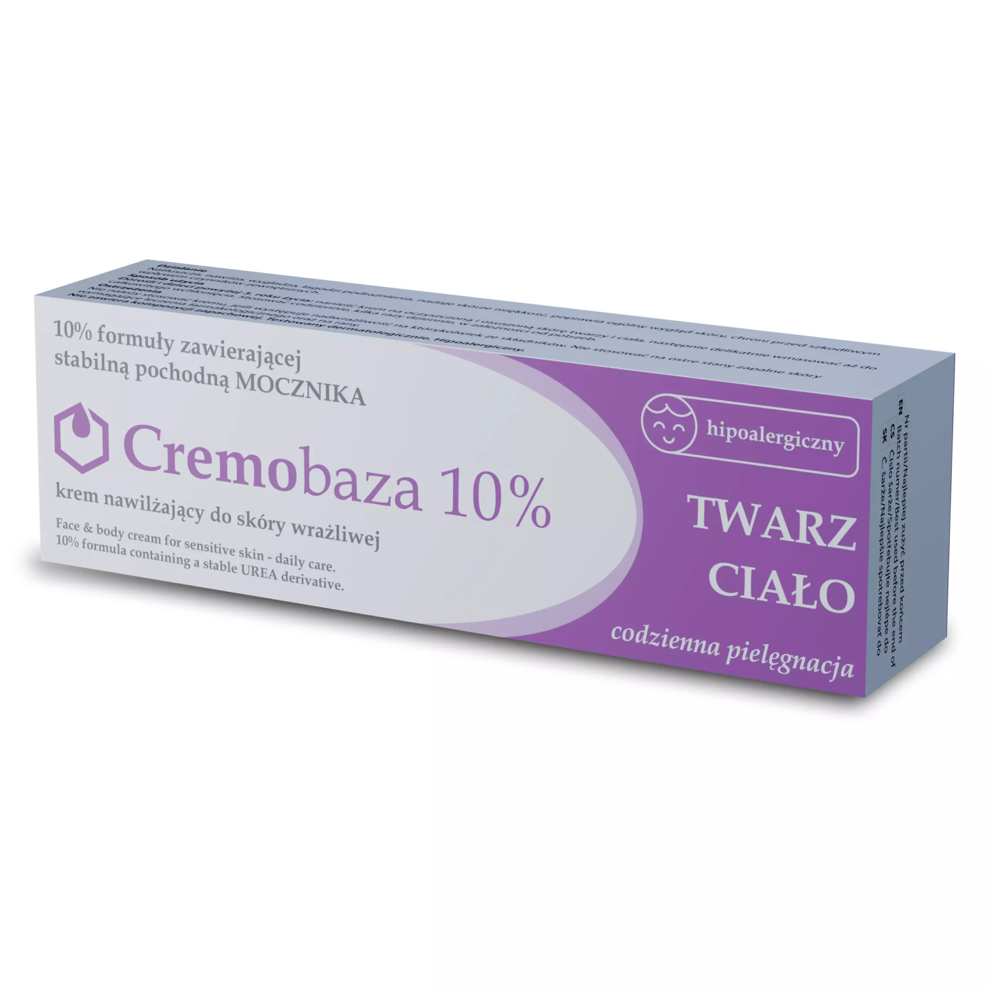 W opakowaniu znajduje się 30 g kremu półtłustego Cremobaza 10%. W skład kosmetyku wchodzi stabilna pochodna mocznika – krem zawiera 10% formuły zawierającej stabilną pochodną mocznika. Kosmetyk Cremobaza 10% może być stosowany do codziennej pielęgnacji skóry twarzy i ciała, w tym jest szczególnie polecany w przypadku skóry wrażliwej i skłonnej do alergii.