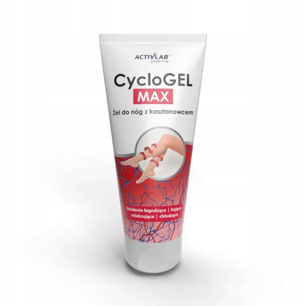 CYCLOGEL MAX, to specjalistyczny żel do nóg, zawierający ekstrakty z kasztanowca, babki lancetowatej i arniki. Składniki preparatu wykazują właściwości łagodzące, chłodzące i kojące.