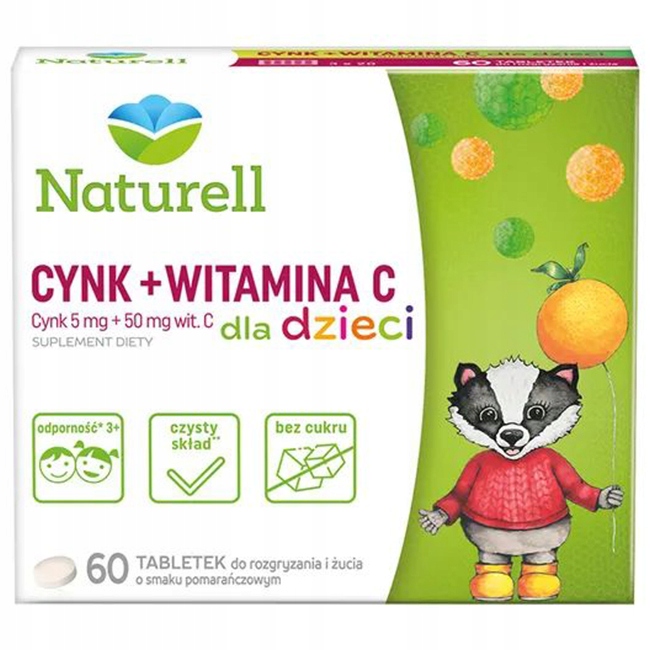 Naturell Cynk + Witamina C dla dzieci - 60 tabletek do rozgryzania i żucia
