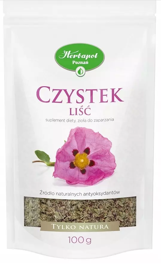 Informacje o produkcie Czystek jest naturalnym źródłem antyoksydantów (polifenoli), których największa koncentracja występuje w zielu. Polifenole wspomagają system immunologiczny organizmu w okresach jego osłabienia. Ponadto chronią organizm przed szkodliwym działaniem wolnych rodników, spowalniając procesy starzenia. Składniki Liść czystka (Cistus incanus). Stosowanie Preparat z ziela czystka jest szczególnie polecany jako uzupełnienie diety w stanach obniżonej odporności. Zalecane dzienne spożycie i sposób użycia Zalecane dzienne spożycie: 1 łyżka suszu do przygotowania naparu. Umieścić susz w kubku i zalać wrzącą wodą. Zaparzyć pod przykryciem od 5 do 8 minut. Nie należy przekraczać zalecanej porcji do spożycia w ciągu dnia. Opakowanie Masa netto: 100 g Ostrzeżenia Nie należy przekraczać zalecanej dziennej porcji. Nie stosować u osób uczulonych na jakikolwiek składnik preparatu. Przechowywać w temperaturze pokojowej. Suplementy diety powinny być przechowywane w sposób niedostępny dla małych dzieci Dla utrzymania prawidłowego stanu zdrowia należy stosować zróżnicowaną dietę i prowadzić zdrowy tryb życia. Czystek (Cistus incanus) jest rośliną, której działanie lecznicze obejmuje m.in. właściwości przeciwwirusowe, przeciwbakteryjne, przeciwgrzybicze oraz przeciwzapalne. Może pomagać w wspieraniu układu odpornościowego poprzez zwiększenie jego odporności na infekcje. Ponadto wykazuje działanie przeciwutleniające, co może być korzystne dla ogólnego stanu zdrowia organizmu. Czystek jest również wykorzystywany w medycynie naturalnej do łagodzenia objawów infekcji dróg oddechowych, takich jak kaszel czy katar, oraz do wspomagania procesu gojenia się ran. Dodatkowo, niektóre badania sugerują, że czystek może mieć właściwości przeciwnowotworowe, jednak dalsze badania są potrzebne w celu potwierdzenia tych efektów. Chcesz dowiedzieć się więcej; przeczytaj "CZYSTEK, ROLA SKŁADNIKÓW I ICH WPŁYW NA ORGANIZM" Producent Poznańskie Zakłady Zielarskie Herbapol S.A., ul. Towarowa 47/51, 61-896 Poznań przeciwwirusowe, przeciwbakteryjne, przeciwgrzybicze, przeciwzapalne, odporność, przeciwutleniające, infekcje dróg oddechowych, gojenie ran, przeciwnowotworowe, choroby skóry, herbata, medycyna tradycyjna,