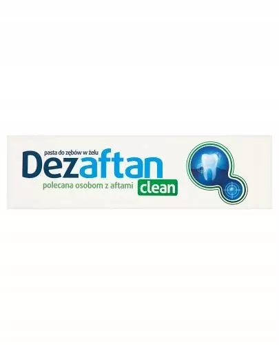 Dezaftan clean został stworzony z myślą o codziennej higienie i pielęgnacji jamy ustnej osób ze skłonnością do występowania aft. Zawarty w składzie chlorek cetylopirydyniowy hamuje przyleganie bakterii do powierzchni zębów. Chloreksydyna, która wykazuje silne działanie antybakteryjne, wraz z fluorem w skuteczny sposób chronią zęby przed próchnicą. Dodatkowo fluor bierze udział w remineralizacji szkliwa. Skład produktu został wzbogacony o żel z aloesu, ekstrakt z korzenia imbiru oraz bisabobol, które łagodzą podrażnienie dziąseł.