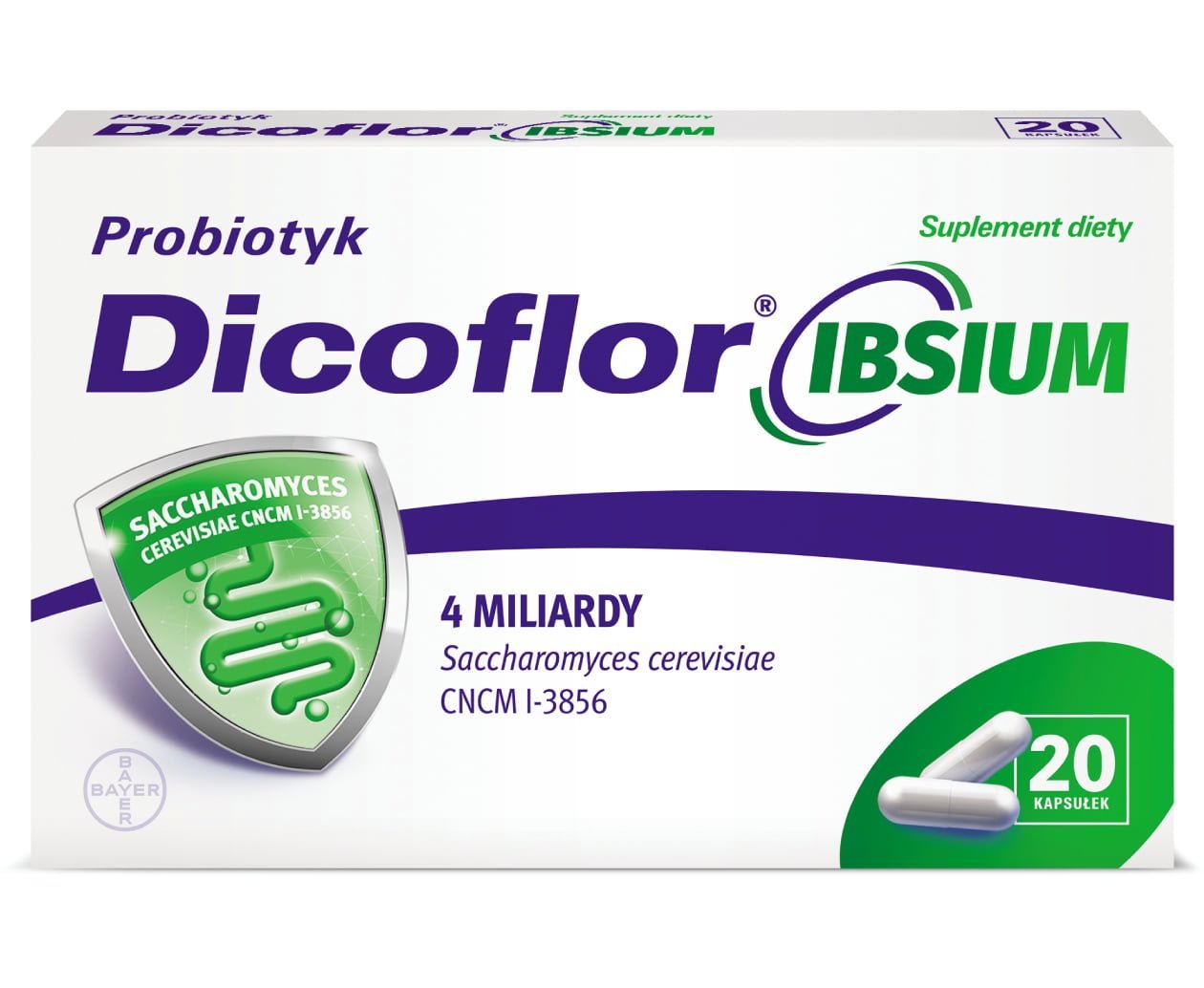 Dicoflor Ibsium to probiotyk, który zawiera suszone żywe komórki drożdży Saccharomyces cerevisiae CNCM I-3856 o udowodnionym w badaniach klinicznych bezpieczeństwie stosowania.