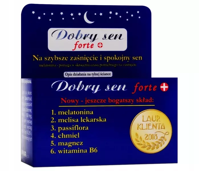 • Naturalne składniki wspomagające sen: chmiel, melisa, passiflora.