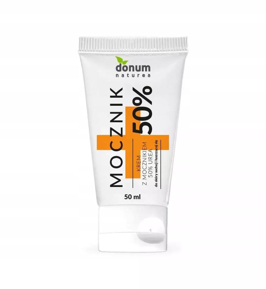 Krem Urea 50% z mocznikiem został stworzony do codzinnej pielęgnacji i ochrony skóry suchej. Dobrze dobrane składniki w kremie rozwiążą problemy zaburzeń rogowacenia towarzyszącego łuszczycy, cukrzycy oraz atopowemu zapaleniu skóry. Dzięki duże zawartości mocznika, krem ten głęboko nawilży i zmiękczy nadmiernie złuszczający się i zrogowaciały naskórek. Produkt doskonale zastąpi kremy do rąk i stóp, świetnie poradzi sobie z pękającymi piętami, a także suchymi dłońmi i stopami oraz przesuszoną i pękajacą skórą łokci i kolan. Krem bardzo łatwo się wchłania nie pozostawiając tłustej warstwy.