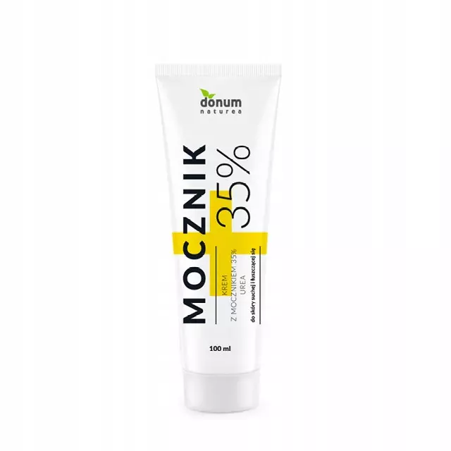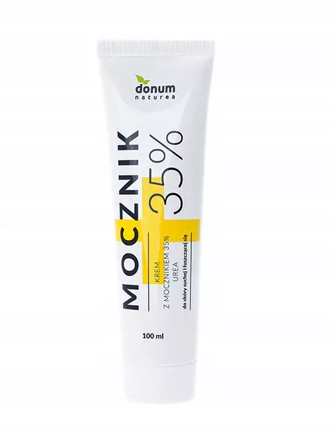 Krem z mocznikiem 35 % Urea do skóry suchej i łuszczącej się. Krem z mocznikiem głęboko nawilżający i złuszczający. Krem zawiera wysoką zawartość mocznika, który w połączeniu z kwasem salicylowym i kwasem mlekowym zmiękcza zrogowaciały i nadmiernie złuszczający się naskórek. Wykazując działanie keratolityczne, intensywnie nawilżające, wygładzające regeneruje go. Likwiduje nadmierne rogowacenie oraz łuszczenie skóry. Krem bardzo łatwo się wchłania nie pozostawiając tłustej warstwy.