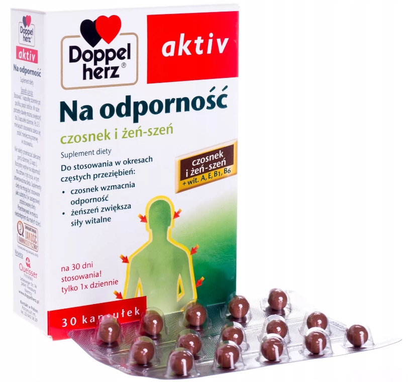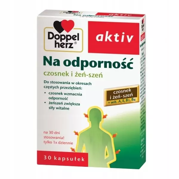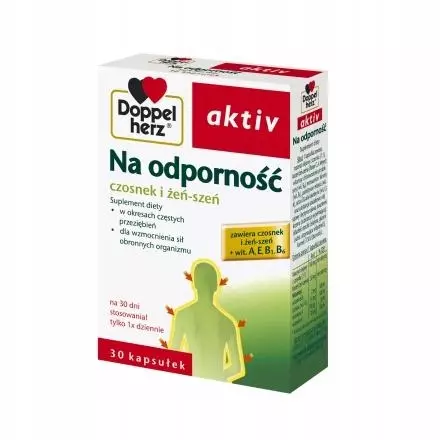 Doppelherz aktiv, na odporność, czosnek i żeń-szeń, suplement diety, 30 kapsułek
