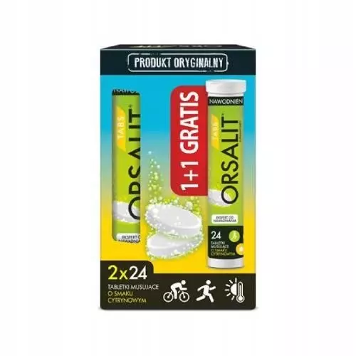 ORSALIT® TABS to suplement diety w postaci tabletek musujących o smaku cytrynowym, który po przygotowaniu tworzy napój nawadniający zawierający glukozę, sód i potas, wzbogacony witaminą C. Dzięki wykorzystaniu efektywnego mechanizmu wspólnego wchłaniania wody, sodu i glukozy szybko gasi pragnienie oraz uzupełnia poziom elektrolitów w organizmie. Przeznaczony jest dla młodzieży i osób dorosłych.