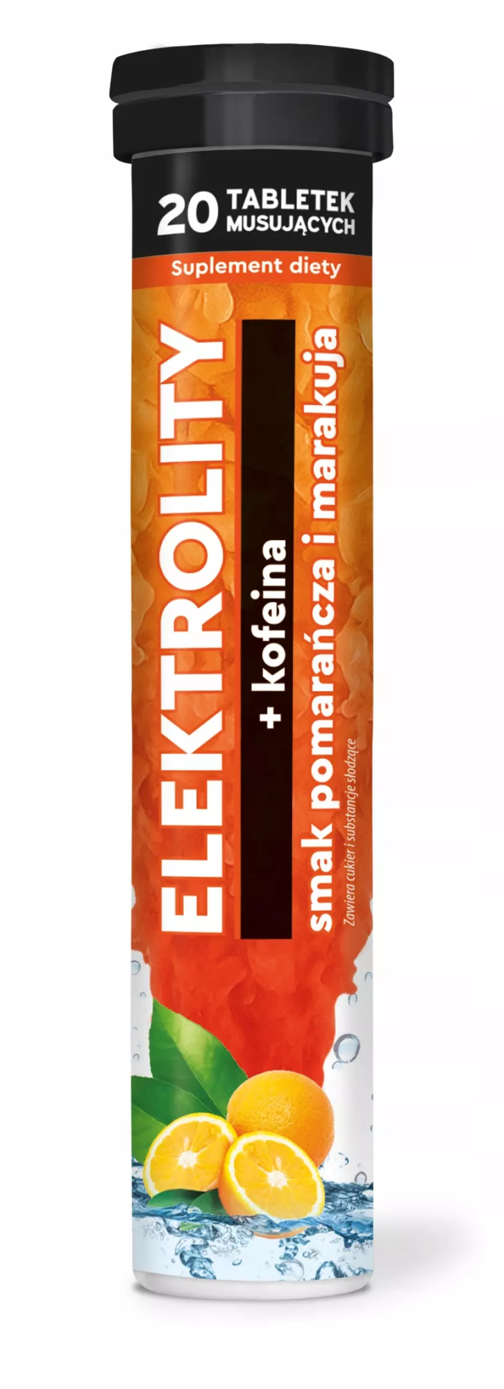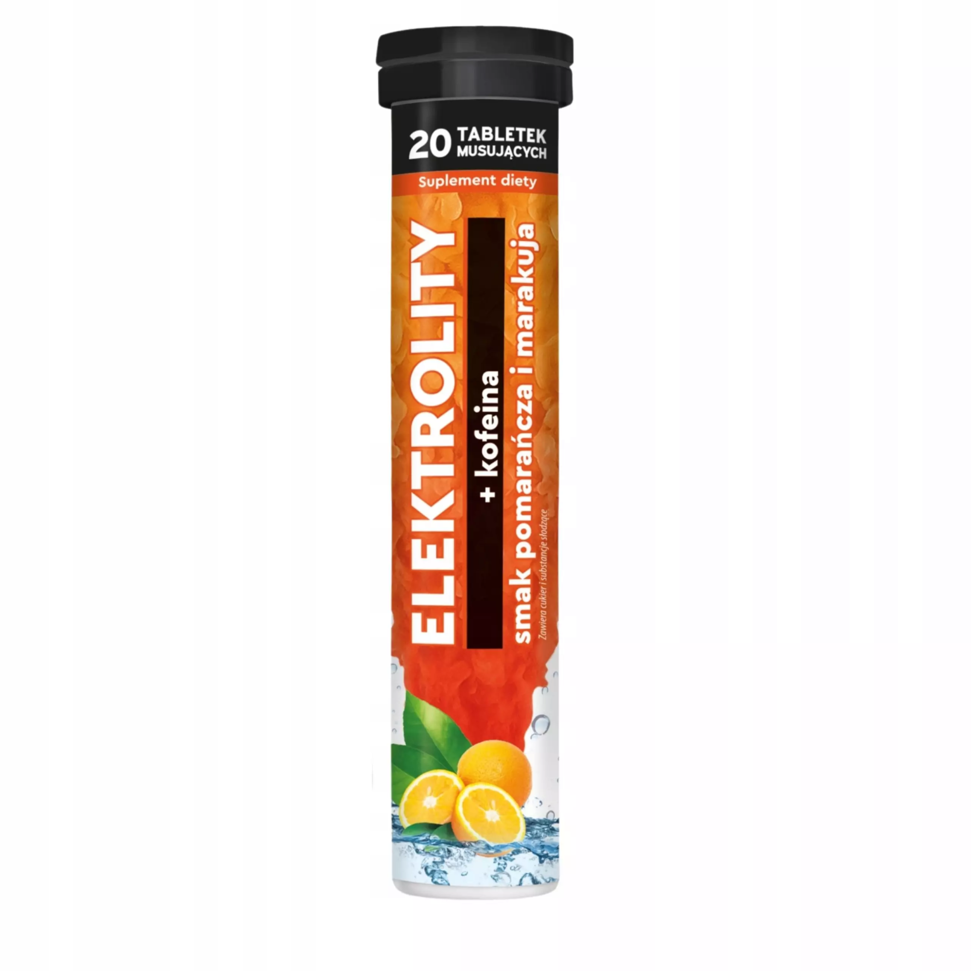 Elektrolity + Kofeina Smak Pomarańcza-Marakuja 20 Tabletek Musujących