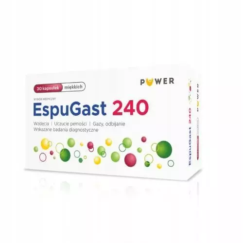 Wyrób medyczny EspuGast 240 przeznaczony jest do stosowania w celu łagodzenia uczucia pełności, uczucia wzdęcia, odbijania, dolegliwości związanych z nadmiernym gromadzeniem się gazów oraz powietrza w przewodzie pokarmowym, które powoduje napięcie i ucisk w jelitach.