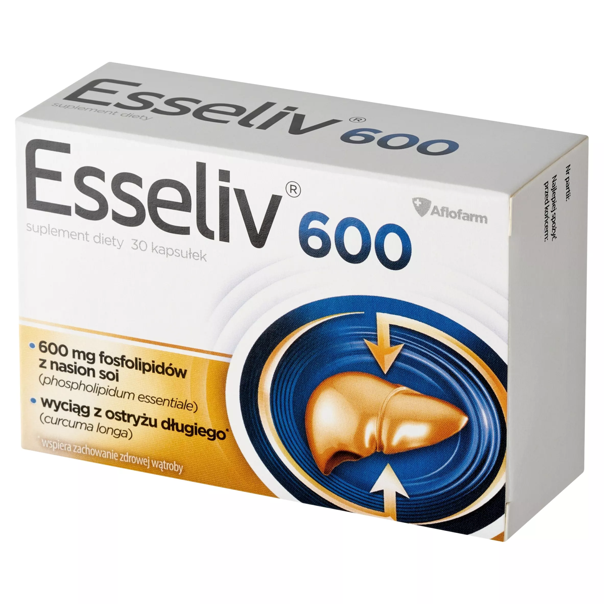 Esseliv 600 - to suplement diety w postaci kapsułek, który zawiera fosfolipidy sojowe i wyciąg z ostryżu długiego. Produkt przeznaczony dla osób dorosłych.