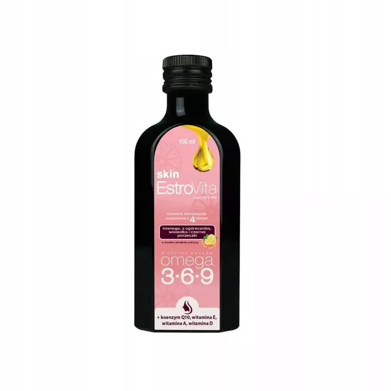 Zawartość wyciągu z olejów lnianego, z ogórecznika, wiesiołka i czarnej porzeczki sprawiają, że suplement diety firmy EstroVita ma pozytywny wpływ na stan naszej skóry, która jest wyjątkowo narażona na wiele czynników zewnętrznych. Dodatkowa zawartość witamin wspomaga jędrną i elastyczną skórę!