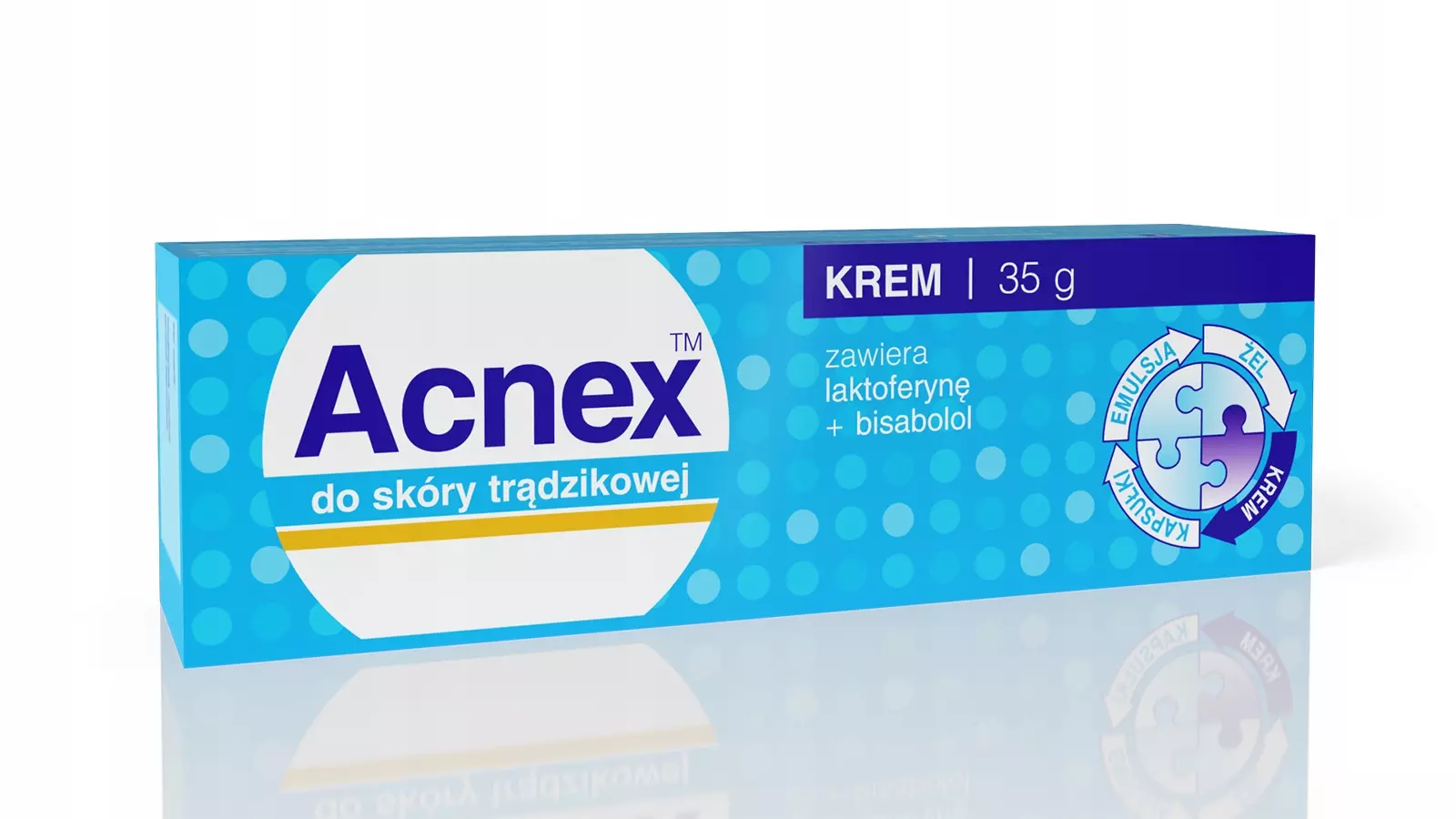 Kluczem do skuteczności Acnex Kremu są dwa główne składniki - laktoferyna i bisabolol. Laktoferyna działa łagodząco na dokuczliwe stany skóry trądzikowej, jednocześnie eliminując bakterie odpowiedzialne za powstawanie trądziku. Bisabolol natomiast działa przeciwbakteryjnie i kojąco na zmiany trądzikowe, aby łagodzić podrażnienia i zapobiegać dalszym wypryskom.