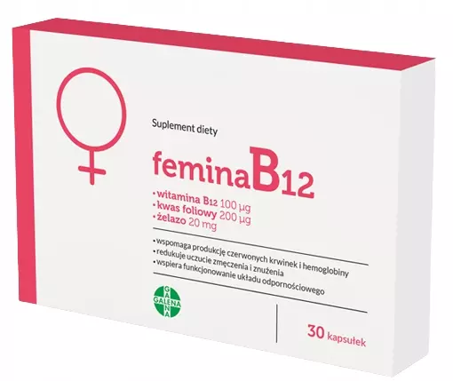 Femina B12 Kwas Foliowy Żelazo 30 Kapsułek